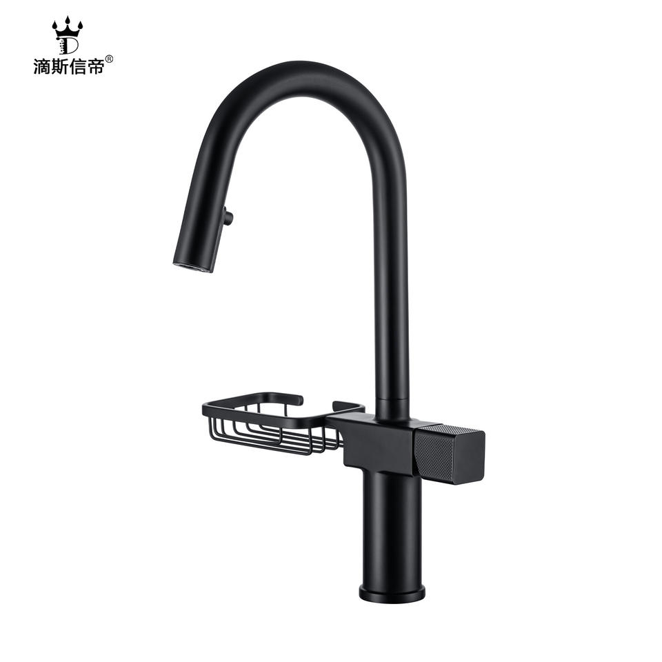 Grifo Doméstico Simple con Agua Fría y Caliente Extraíble para Fregadero de Cocina, Antisalpicaduras, Universal, Giratorio, con Estante de Almacenamiento