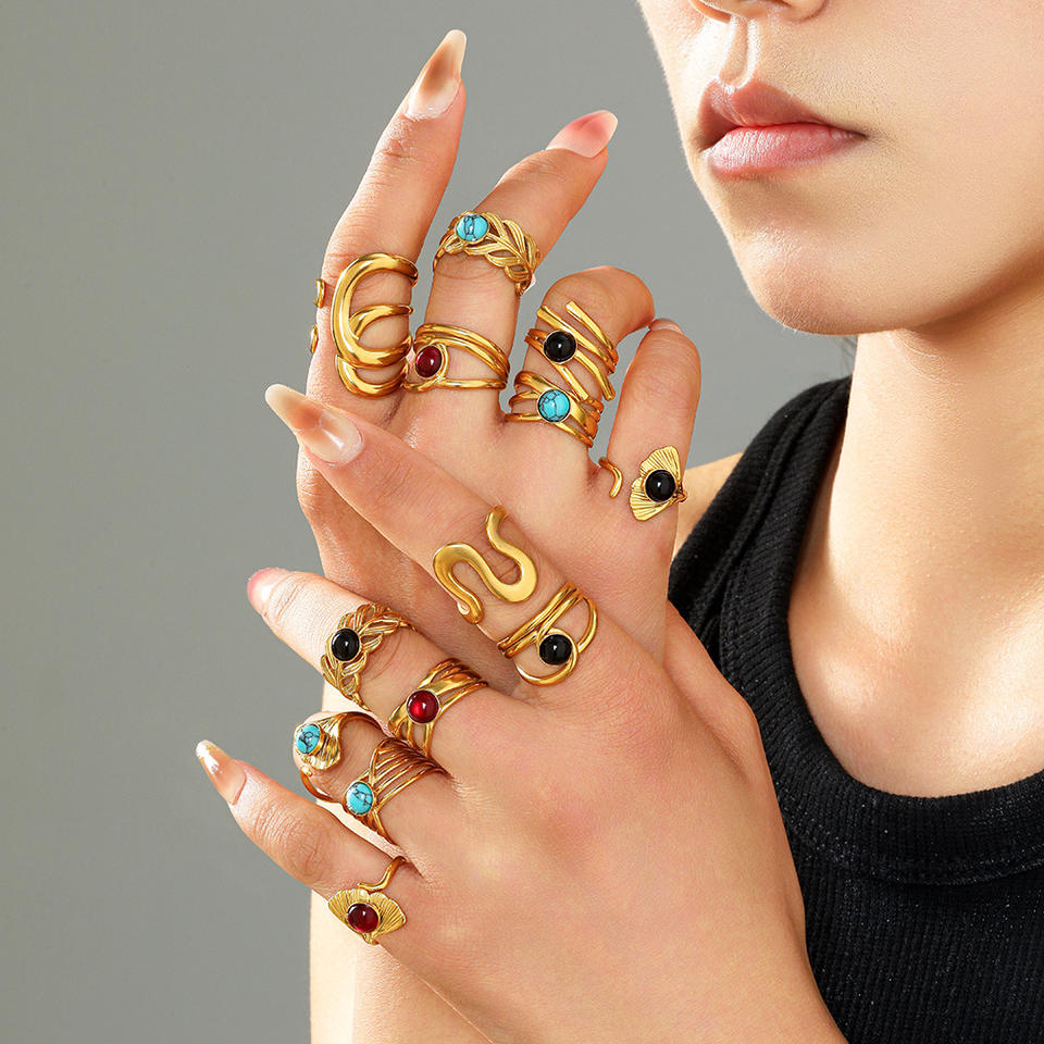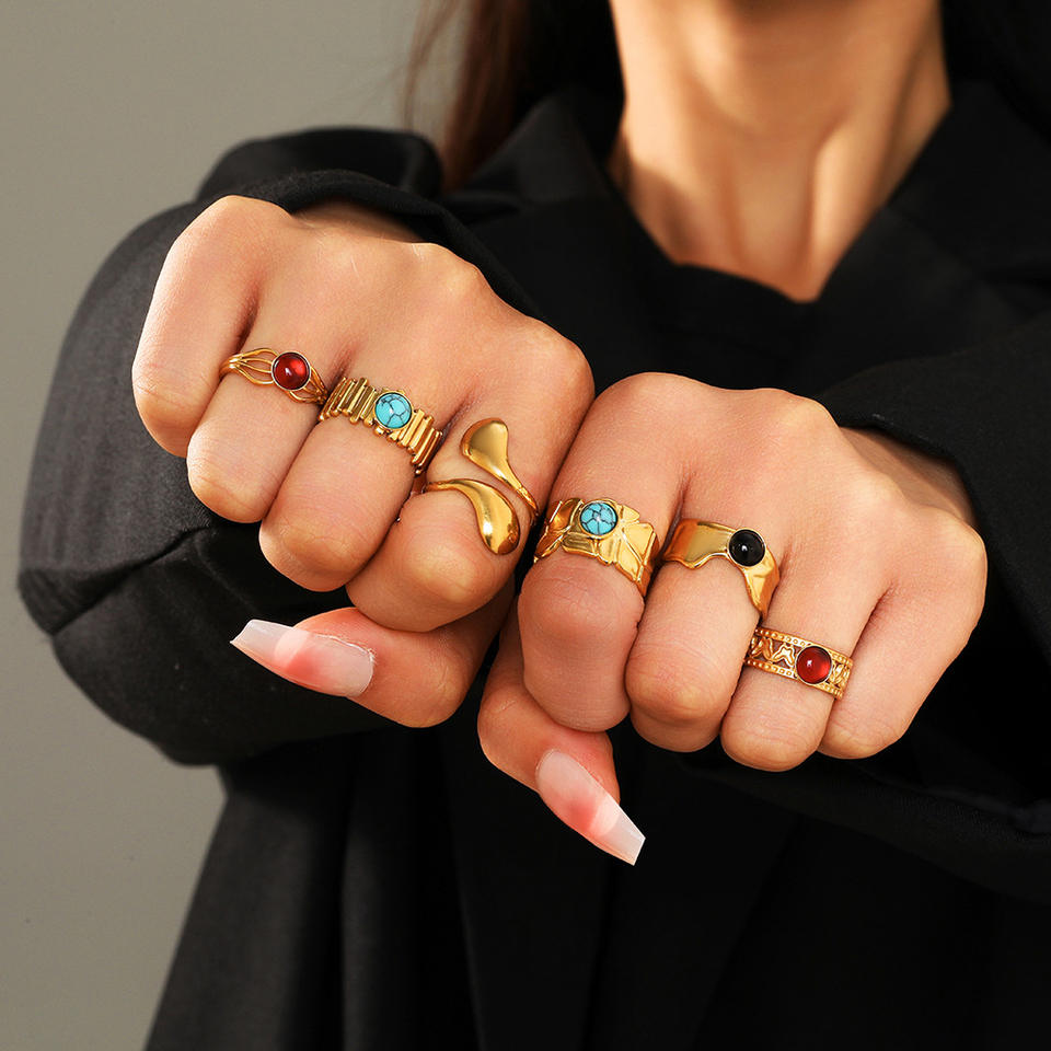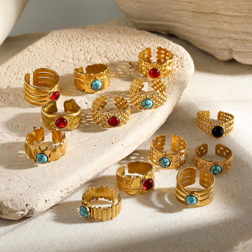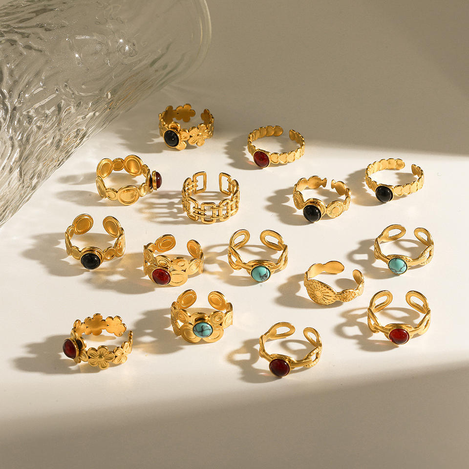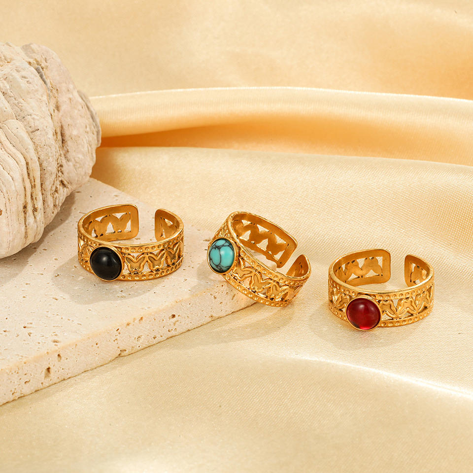 Simple estilo INS piedra natural piedra preciosa hueco ajustable anillo abierto 18K oro galvanizado Acero inoxidable al por mayor