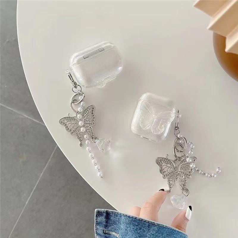 Funda para auriculares Simple Laser Bowknot Bling para AirPods 1 Pro 2 3 generación funda de caja de carga para auriculares Air Pods Pro2 llavero
