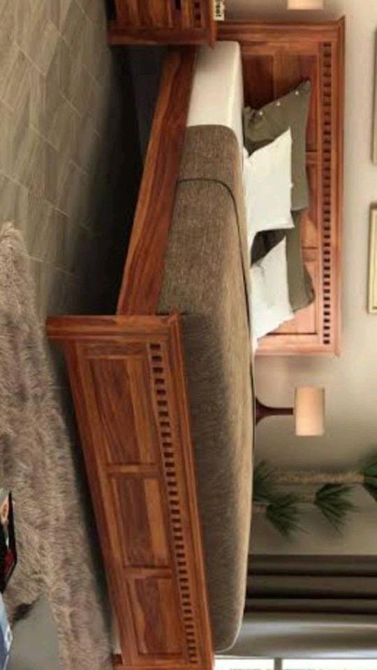Cama Sencilla de Madera de Mango, Cama Matrimonial Grande para Recámara Principal, Cama para Bodas