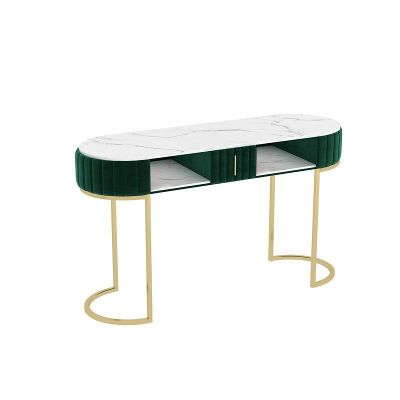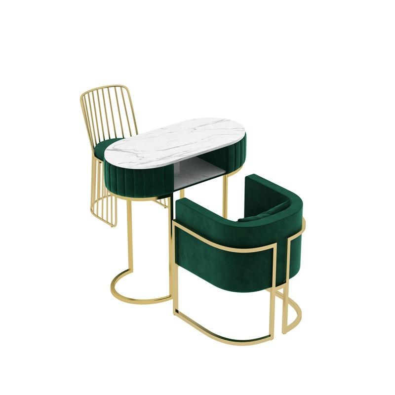 Mesa de uñas integrada de almacenamiento de mármol simple, juego de mesa de uñas de metal de hierro de doble capa y doble para una persona