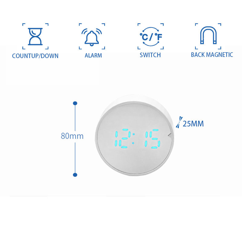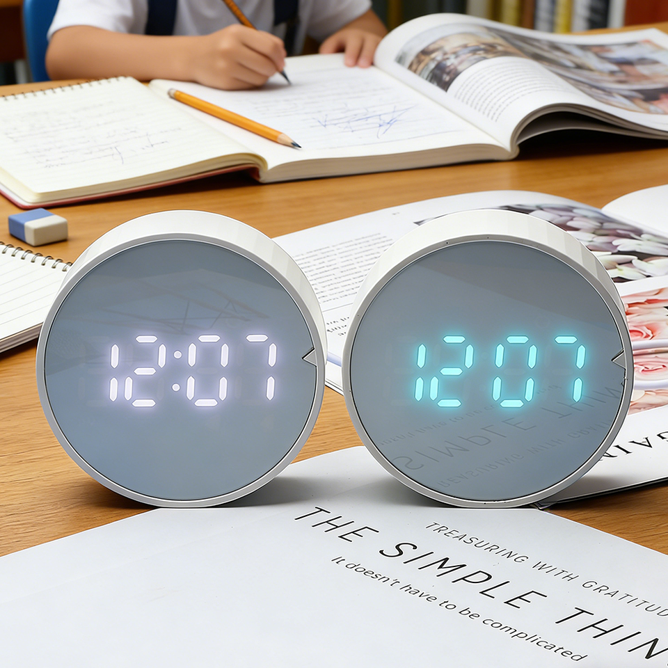 Reloj Despertador Circular Simple y Mini, Temporizador de Cuenta Regresiva, Control por Voz Magnético, Activación por Vibración, Pantalla Brillante