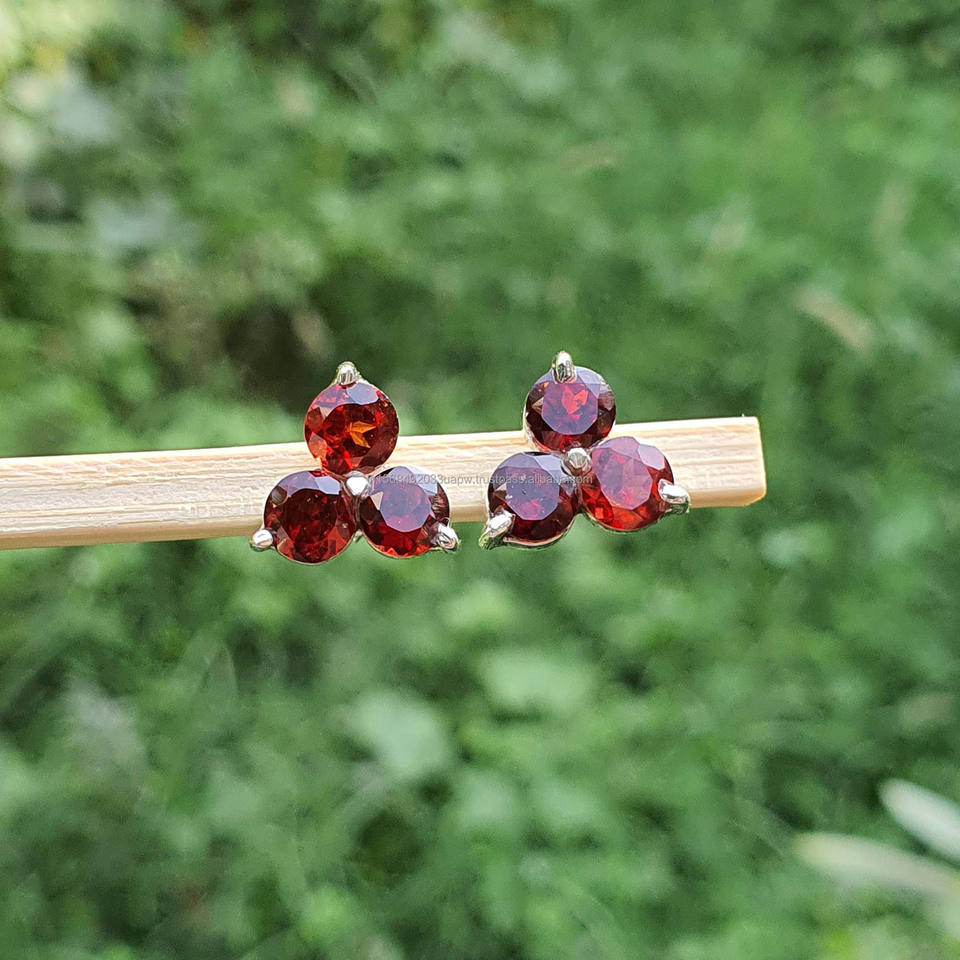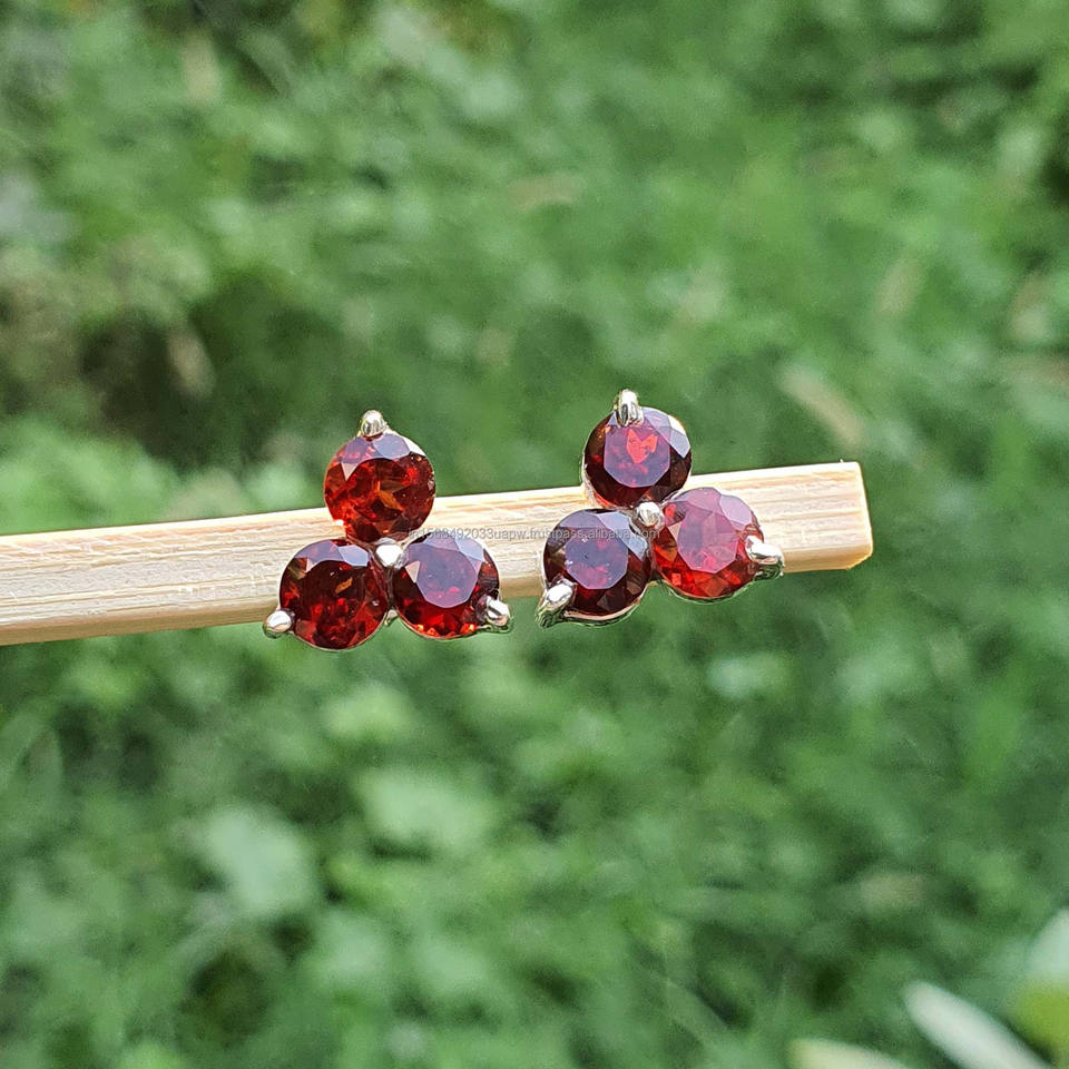 Pendientes de tuerca de granate de piropo de Plata de Ley 925 minimalista Simple diseño geométrico de tres piedras cuerpo fino oro boda de moda