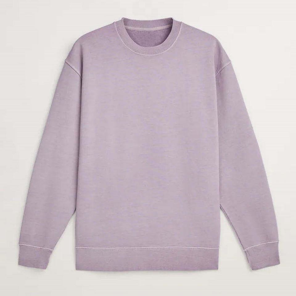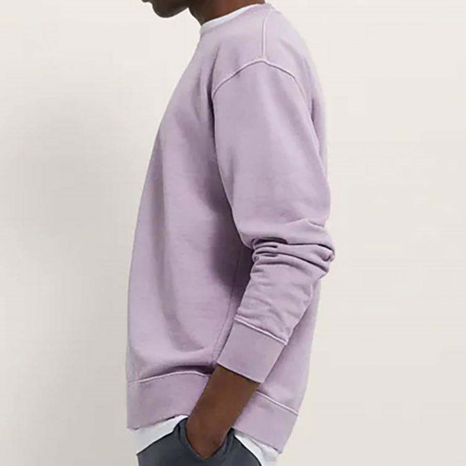 Sudadera de Cuello Redondo para Hombre, Estilo Minimalista, Corte Regular, Color Violeta Sólido, 100% Algodón, Felpa Francesa, Forrada, para Invierno