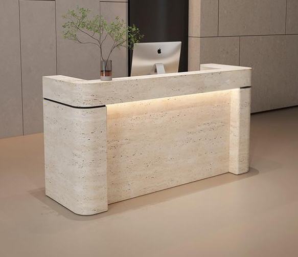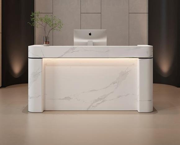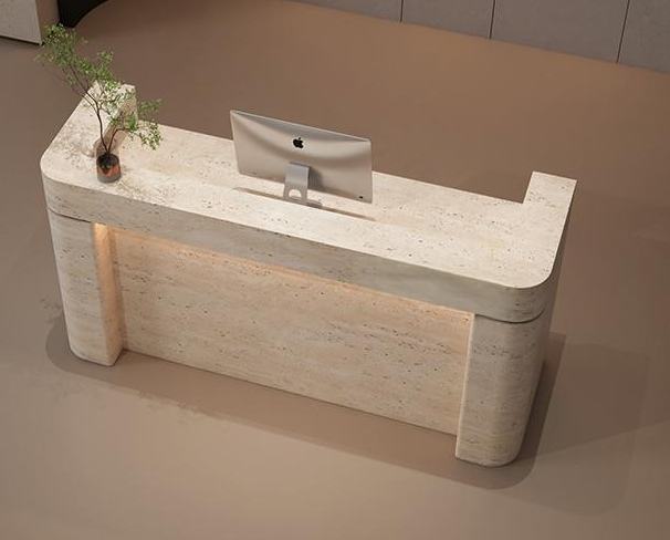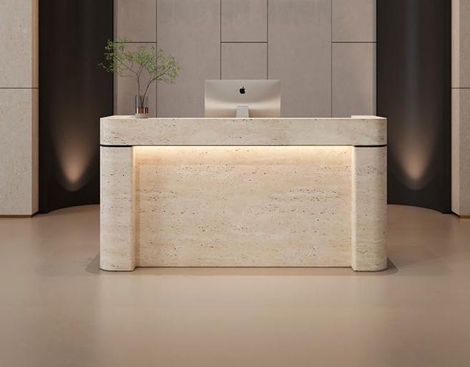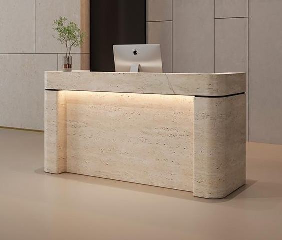 Mostrador de Recepción Moderno y Sencillo con Acabado de Grano de Piedra, Personalizable, para Conserjería y Cajero