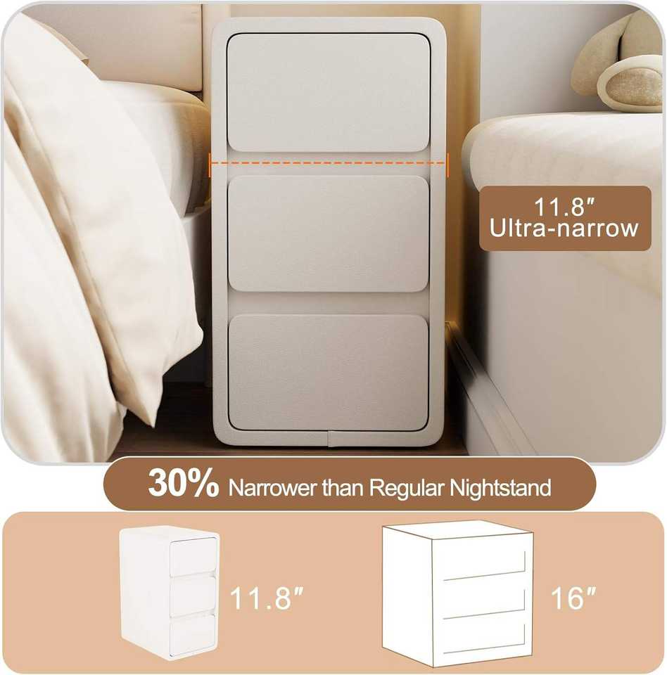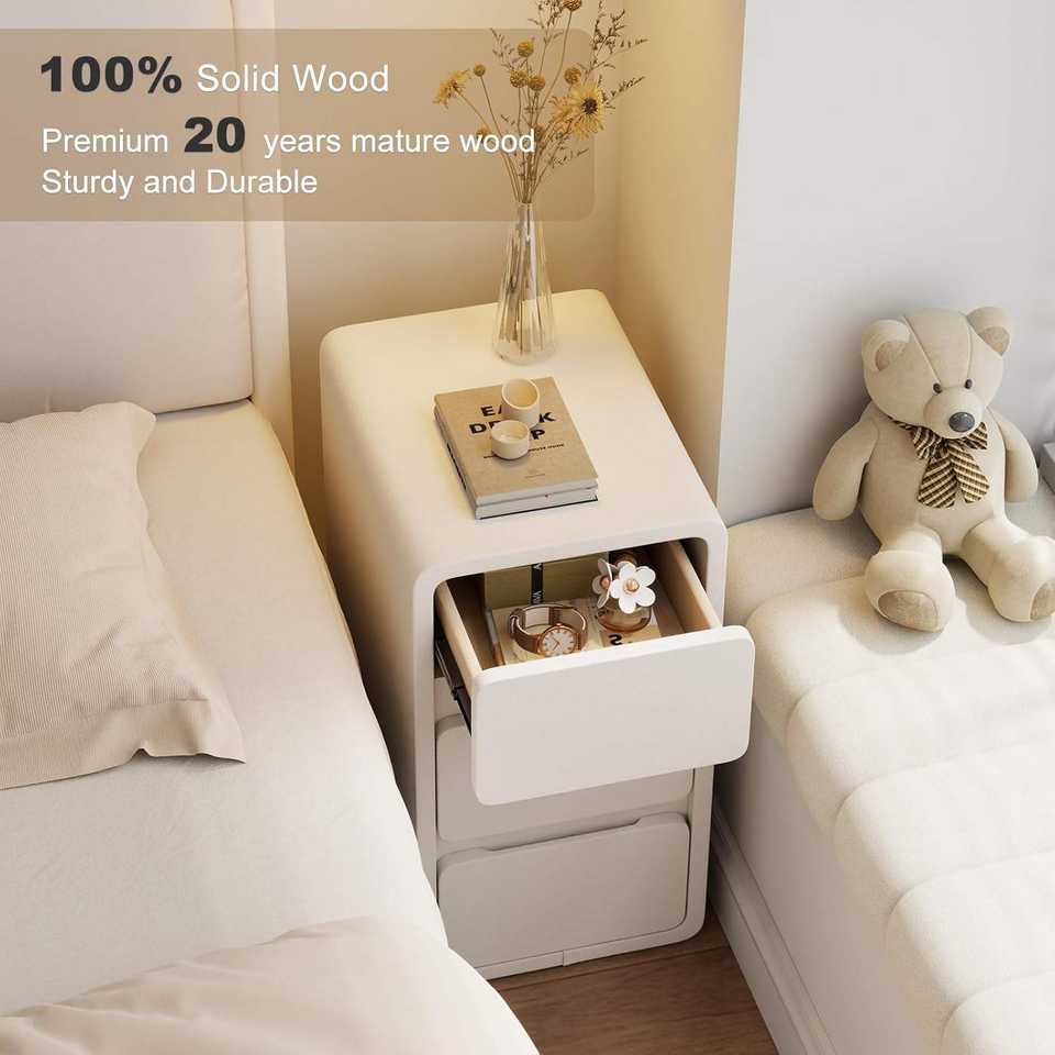 Mesita de Noche Estrecha de Color Puro Simple con 2-3 Cajones, Cómoda de Almacenamiento Moderna de Madera Maciza, Adecuada para Muebles de Dormitorio.