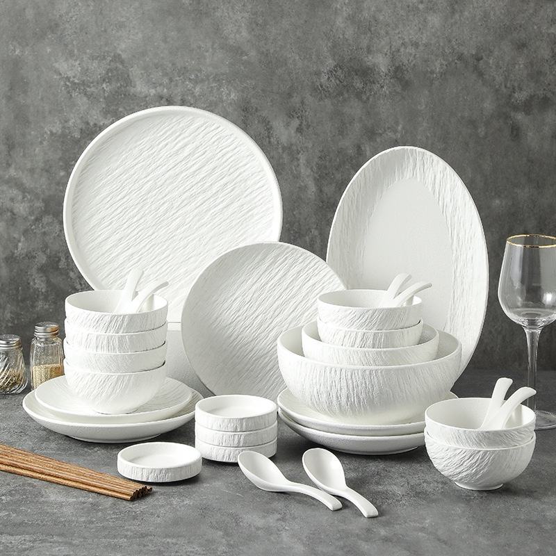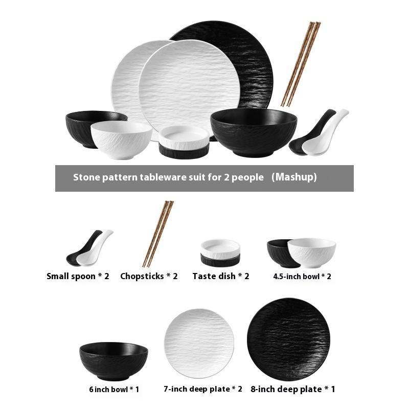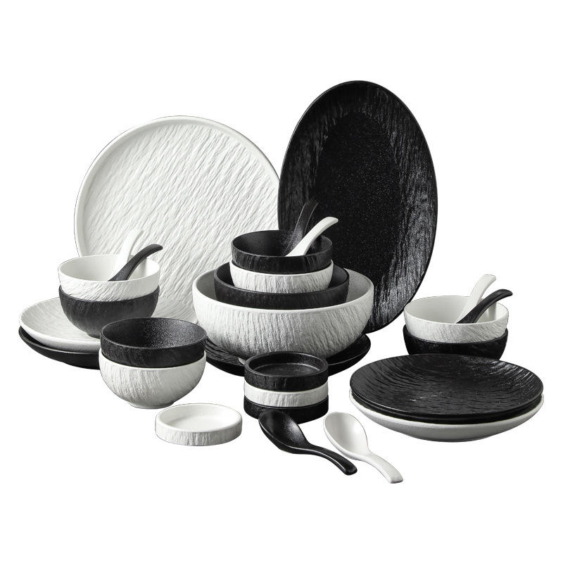 Juego de platos y platos de cerámica negra con diseño de roca simple, vajilla ligera de lujo de 4 a 6 piezas para fiesta en casa o inauguración de la casa