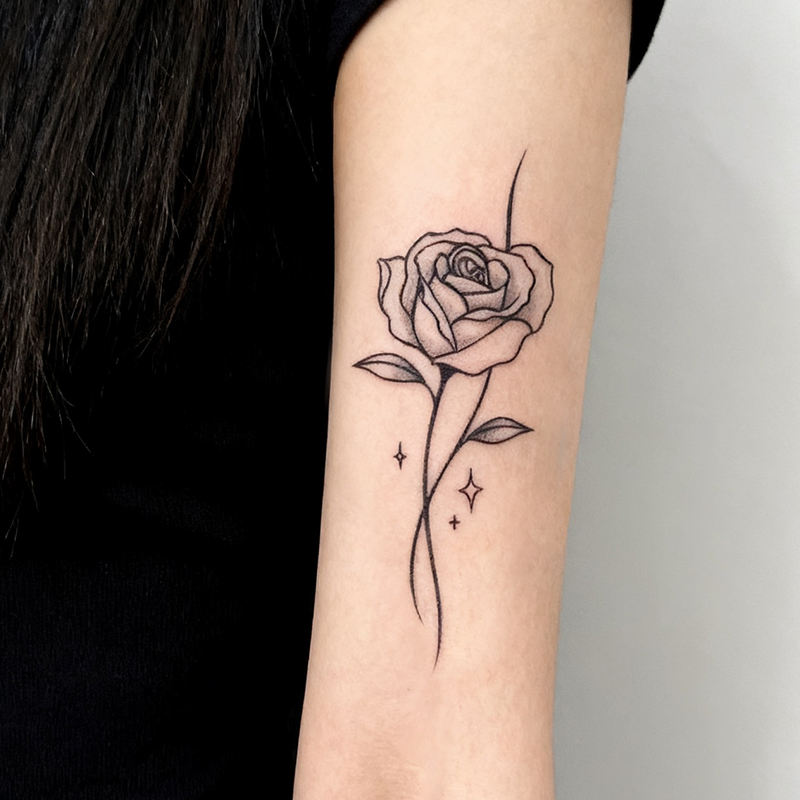 Tatuaje Temporal Simple de Rosa, Tatuaje Semipermanente Impermeable, Dura 2 Semanas, Tatuaje Herbal Realista para Brazo y Cuerpo