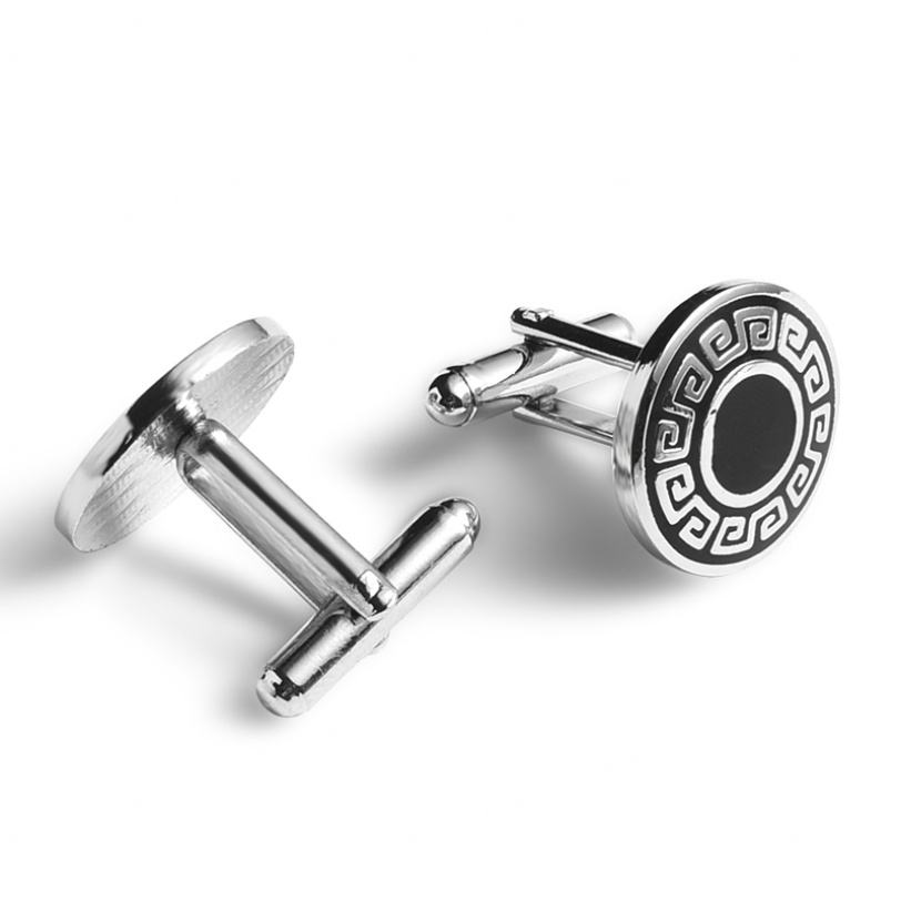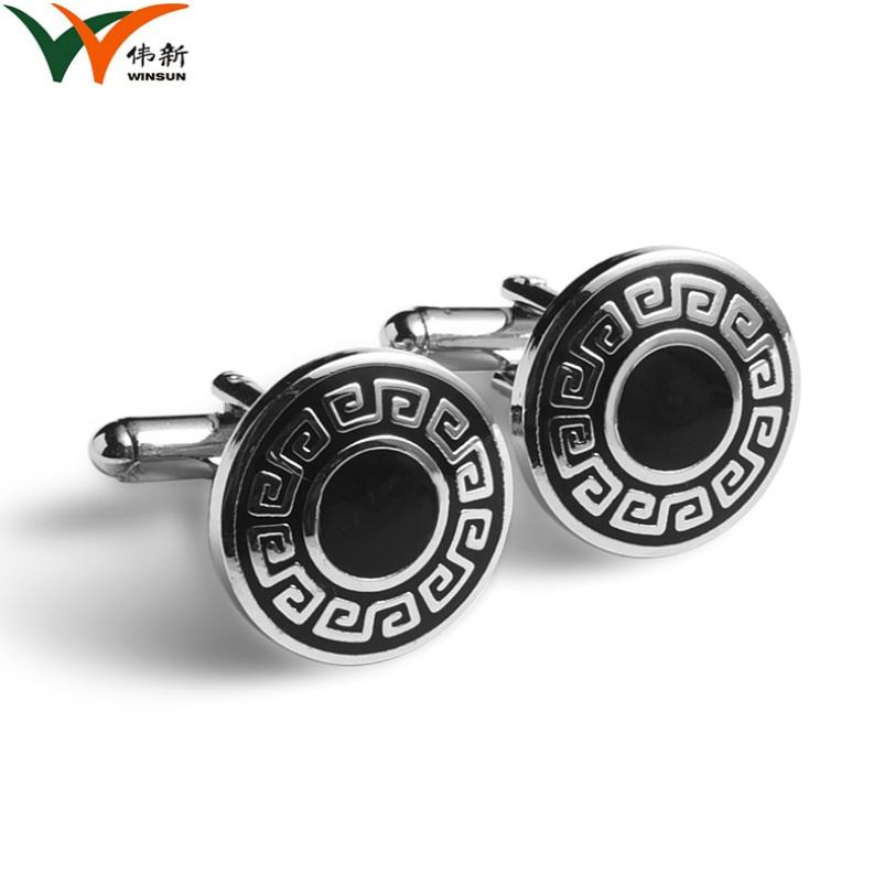 Mancuernillas de camisa de ajuste delgado con logotipo negro de esmalte epoxi suave de diseño redondo simple
