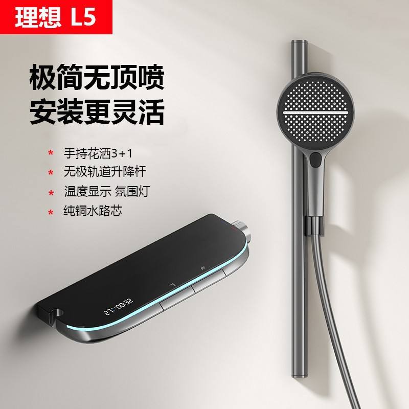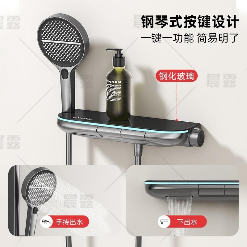 Juego de ducha simple con estante de almacenamiento rectangular montado en la pared y botón de presión para uso en el baño