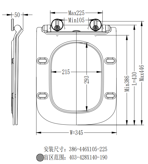 Descripción:Asiento de inodoro Slimline Duroplast de forma cuadrada
