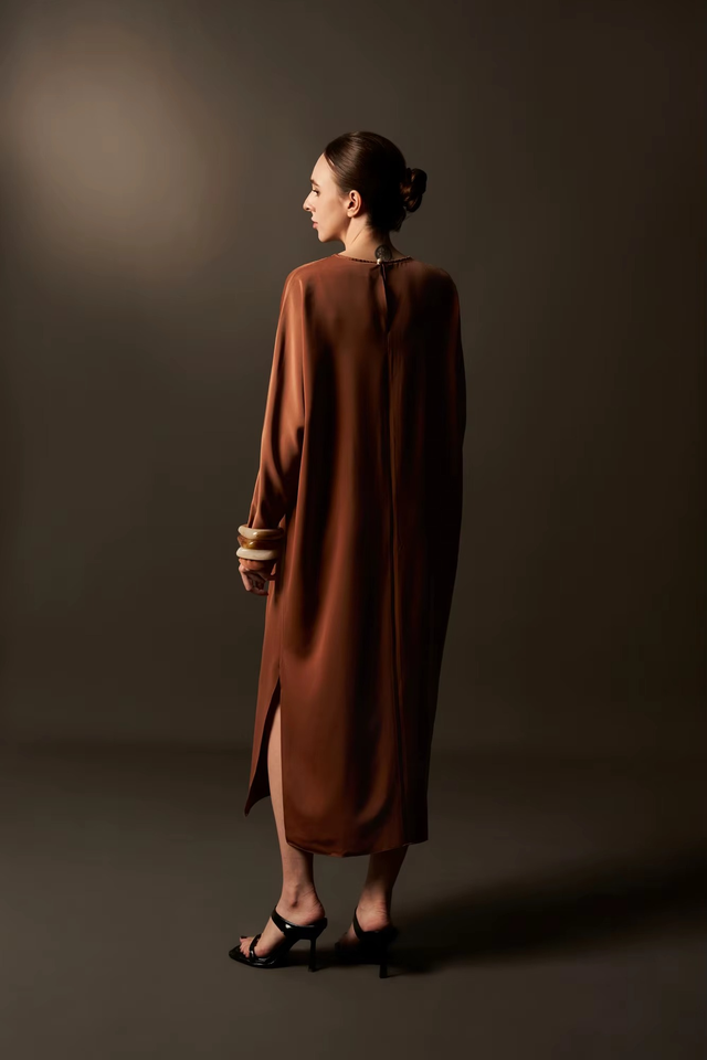 Simple Solid Button Breathable Regular Sleeve Midi Satin Casual Loose Waist Minimalist Woven Silk Loose Dresses Made in Vietnam
