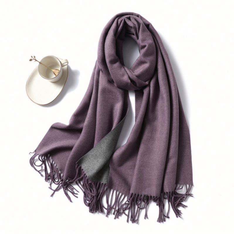 Chales Largos de Cachemira de Color Sólido para Mujer, Gruesos y Cálidos para Invierno, con Borlas, Bufanda de Doble Cara de Dos Colores para Exteriores