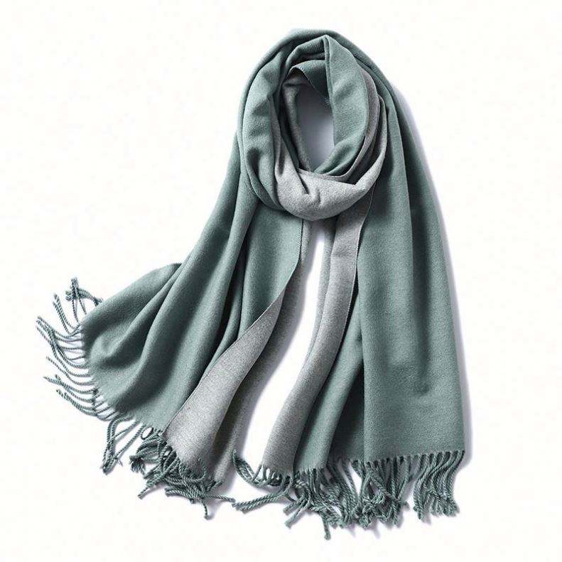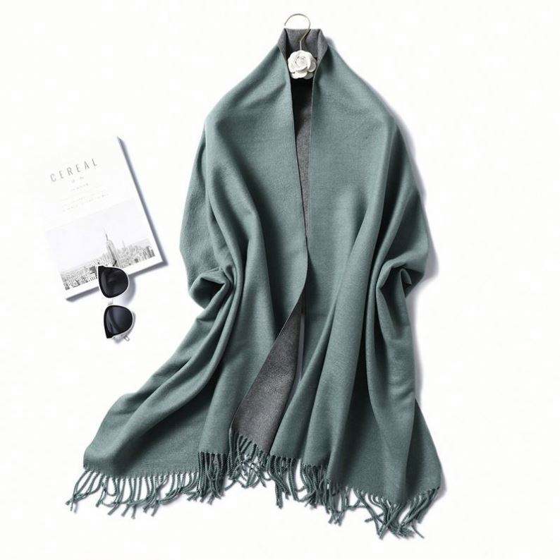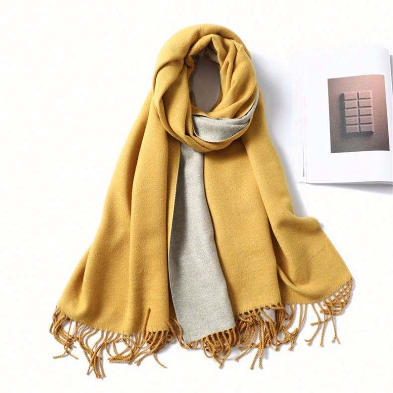Chales Largos de Cachemira de Color Sólido para Mujer, Gruesos y Cálidos para Invierno, con Borlas, Bufanda de Doble Cara de Dos Colores para Exteriores