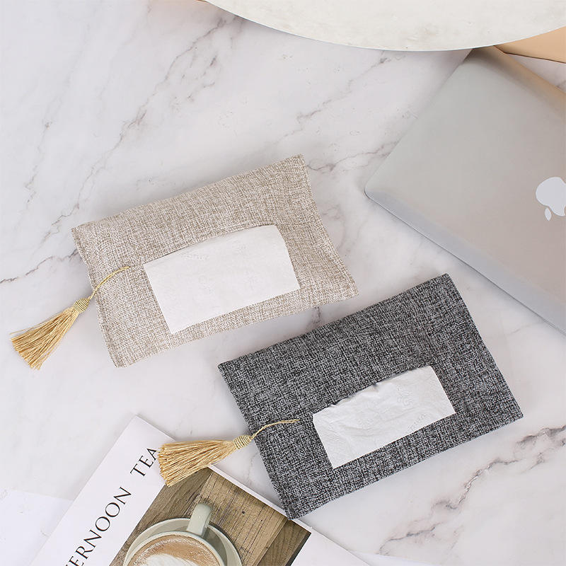 Caja de pañuelos de cuero de color liso simple, negra, gris, beige, de PVC, para coche, bolsa de almacenamiento de pañuelos extraíbles con diseño de borla