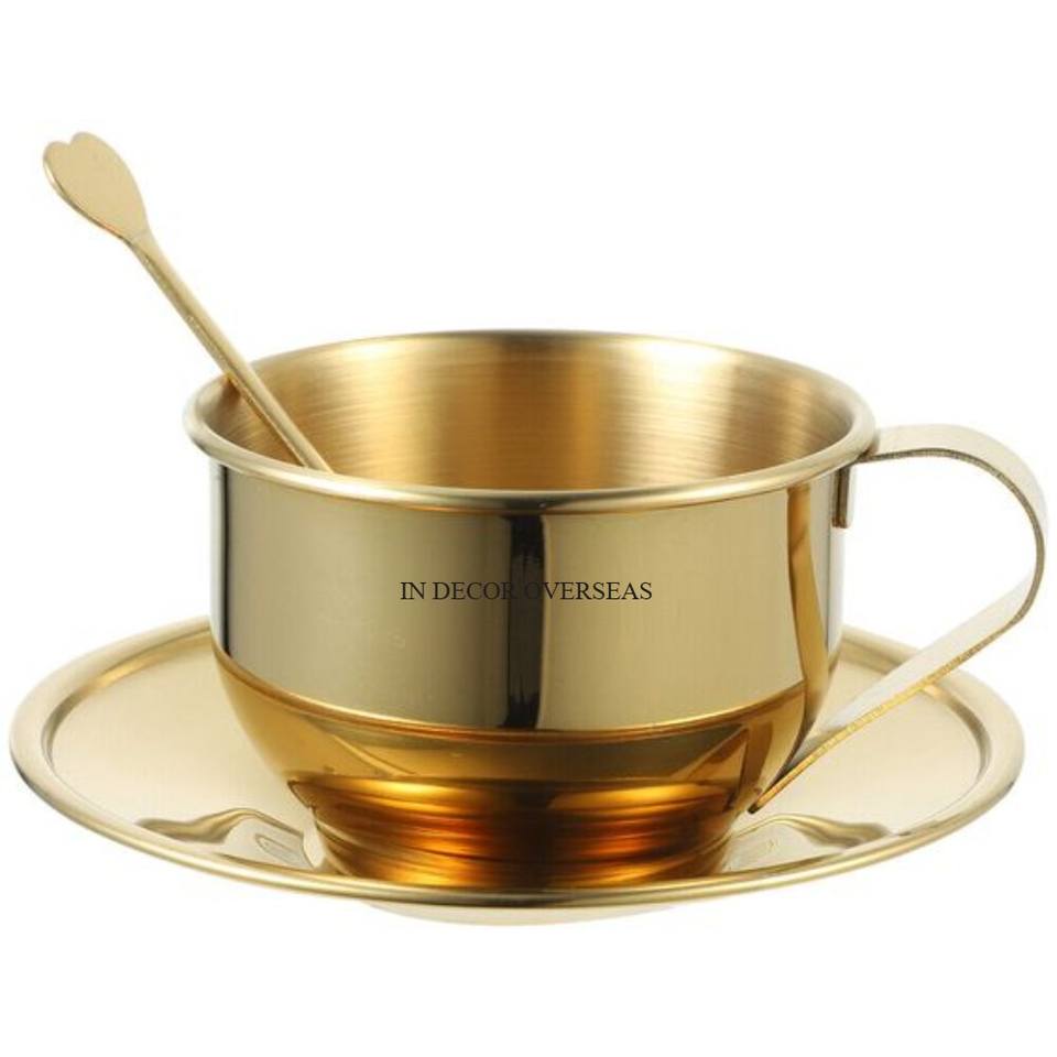 Taza de té de latón de la mejor calidad chapada en oro de alto grado más demandada de diseñador estándar simple con asa y platillo al precio más bajo