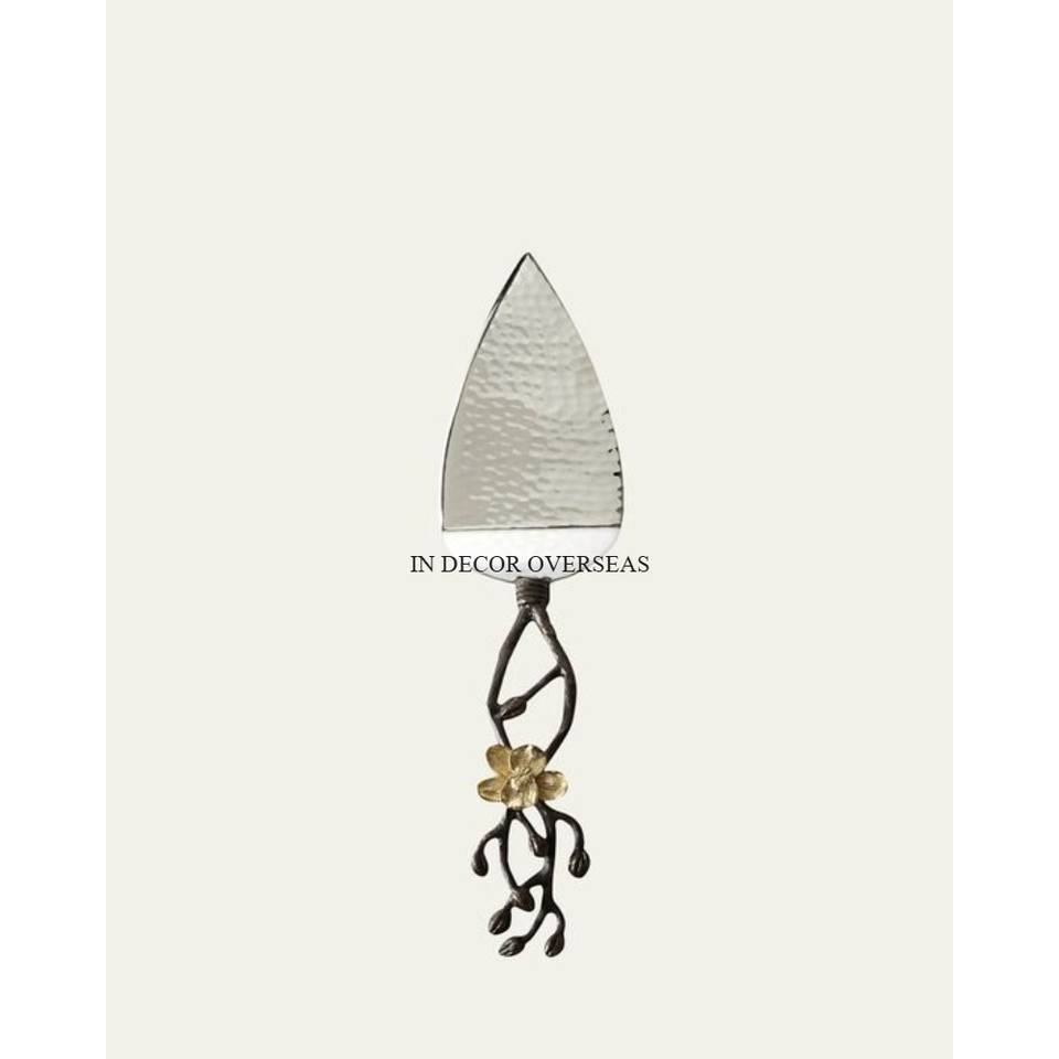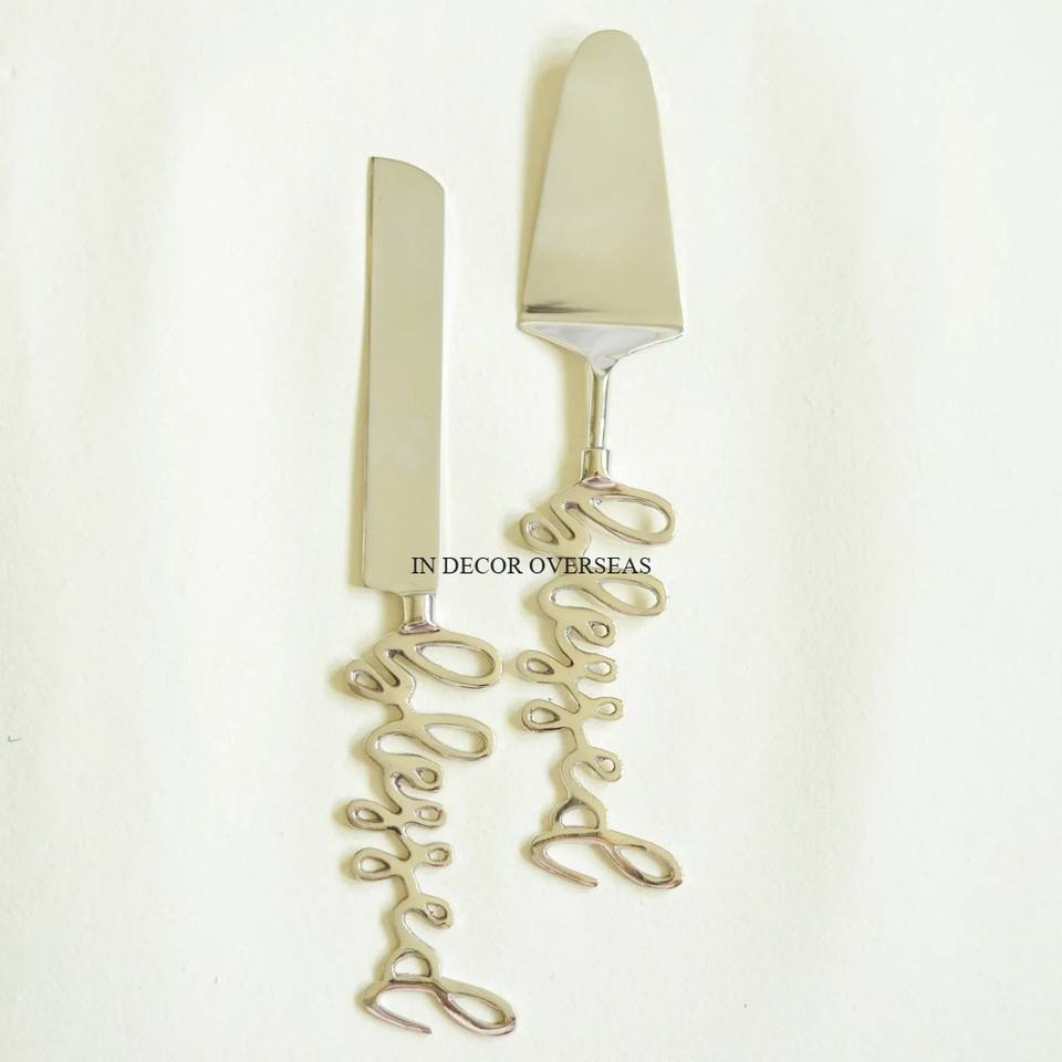 Juego de cuchillos y servidor de pastel de aspecto atractivo pulido brillante y plateado de metal chapado en oro de calidad superior de diseñador estándar simple