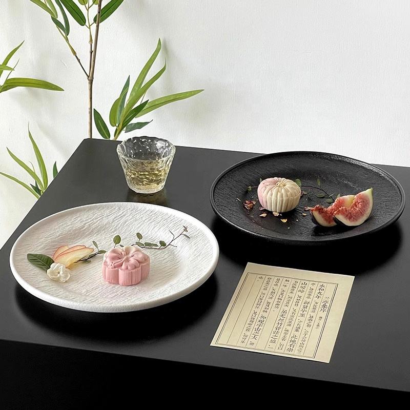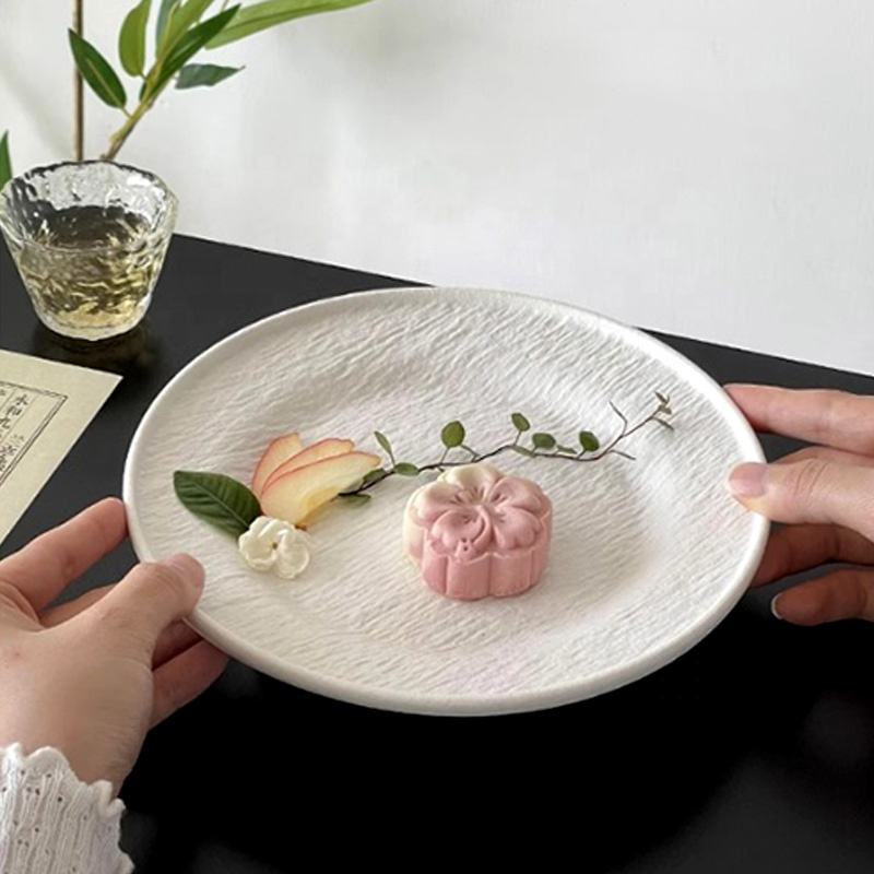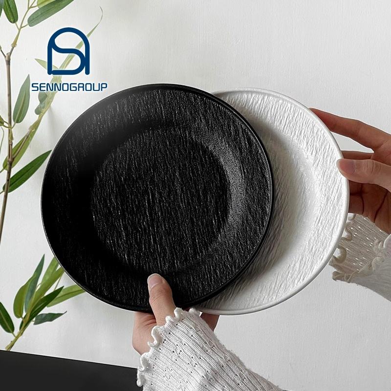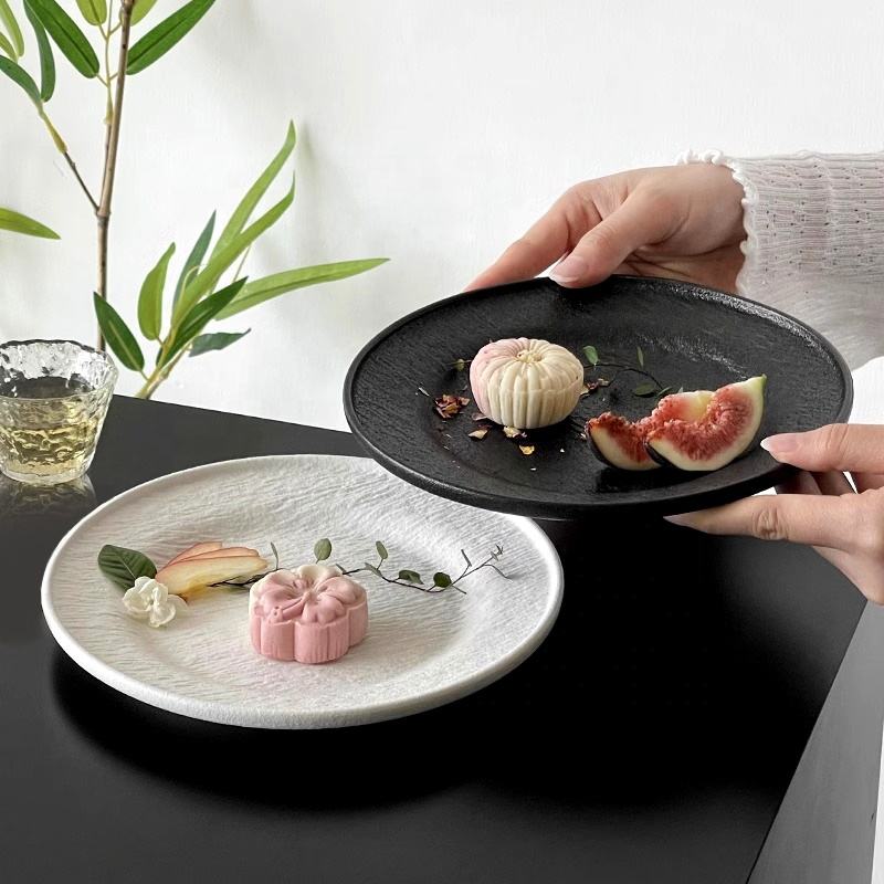 Platos de gres simples Juego de vajilla de té de la tarde Piatti Rock Texturizado Cerámica Bistec Diner Plato de postre