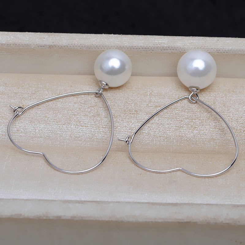 Aretes de Plata S925 de Estilo Simple para Joyería DIY, Accesorios con Perlas de 7-10 mm, Broches de Oreja 4820, Diseño de Gota Circular Fina y Moderna