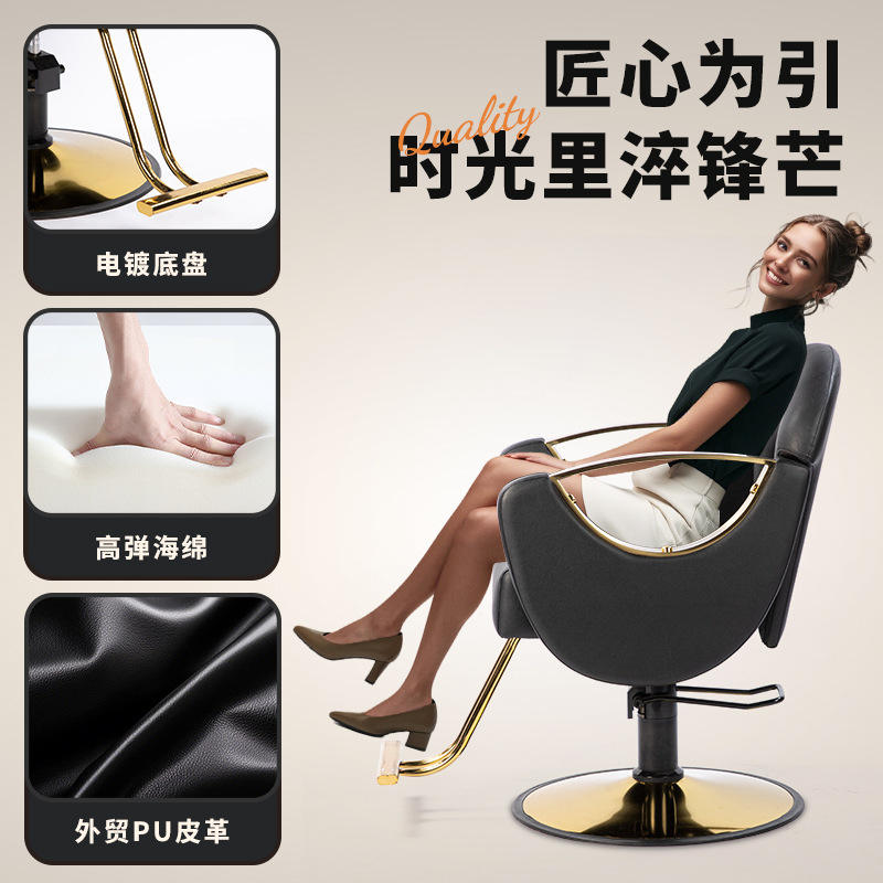 Silla de Peluquería Simple y Elegante con Ajuste de Altura, Diseño Giratorio Reclinable para Salones de Belleza con Reposabrazos