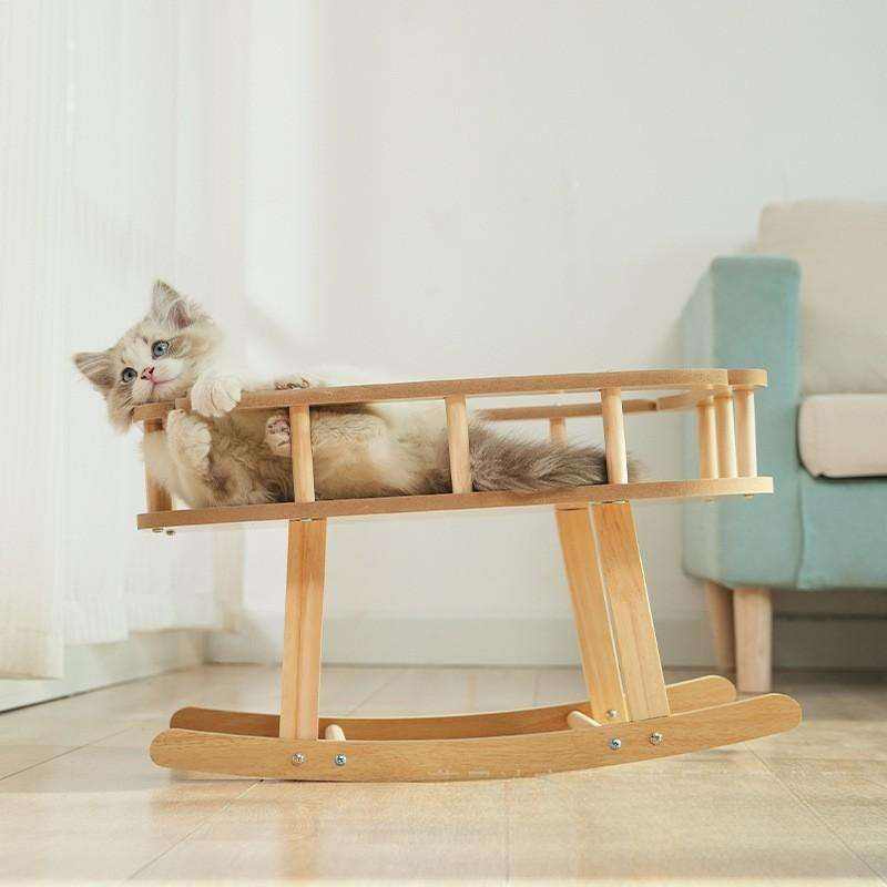 Cama para mascotas sencilla y fresca de verano, naranja, con diseño sólido, hamaca de madera para gatos, nido de tela transpirable, bambú solar para el disfrute