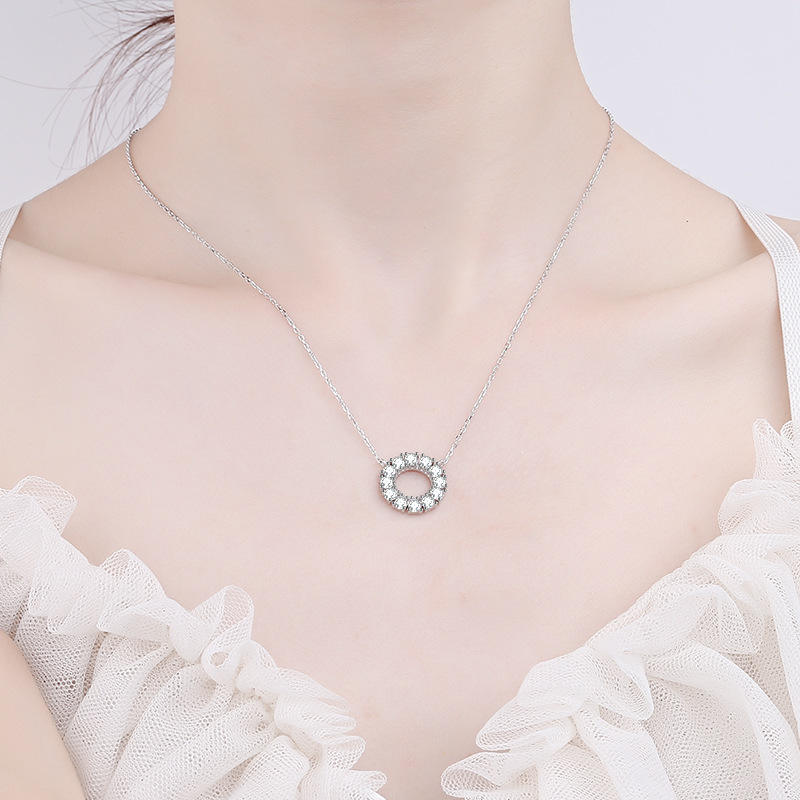 Temperamento Simple completo diamante Moissanite redondo hueco colgante S925 collar de plata esterlina Mujer