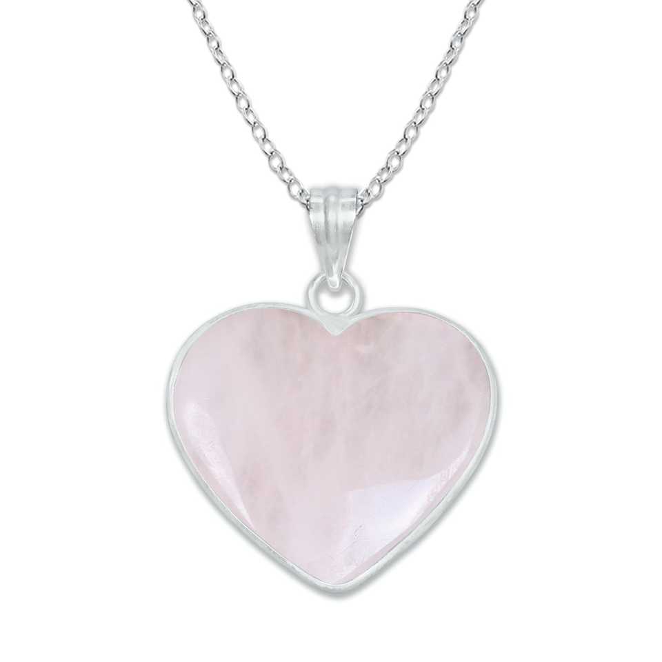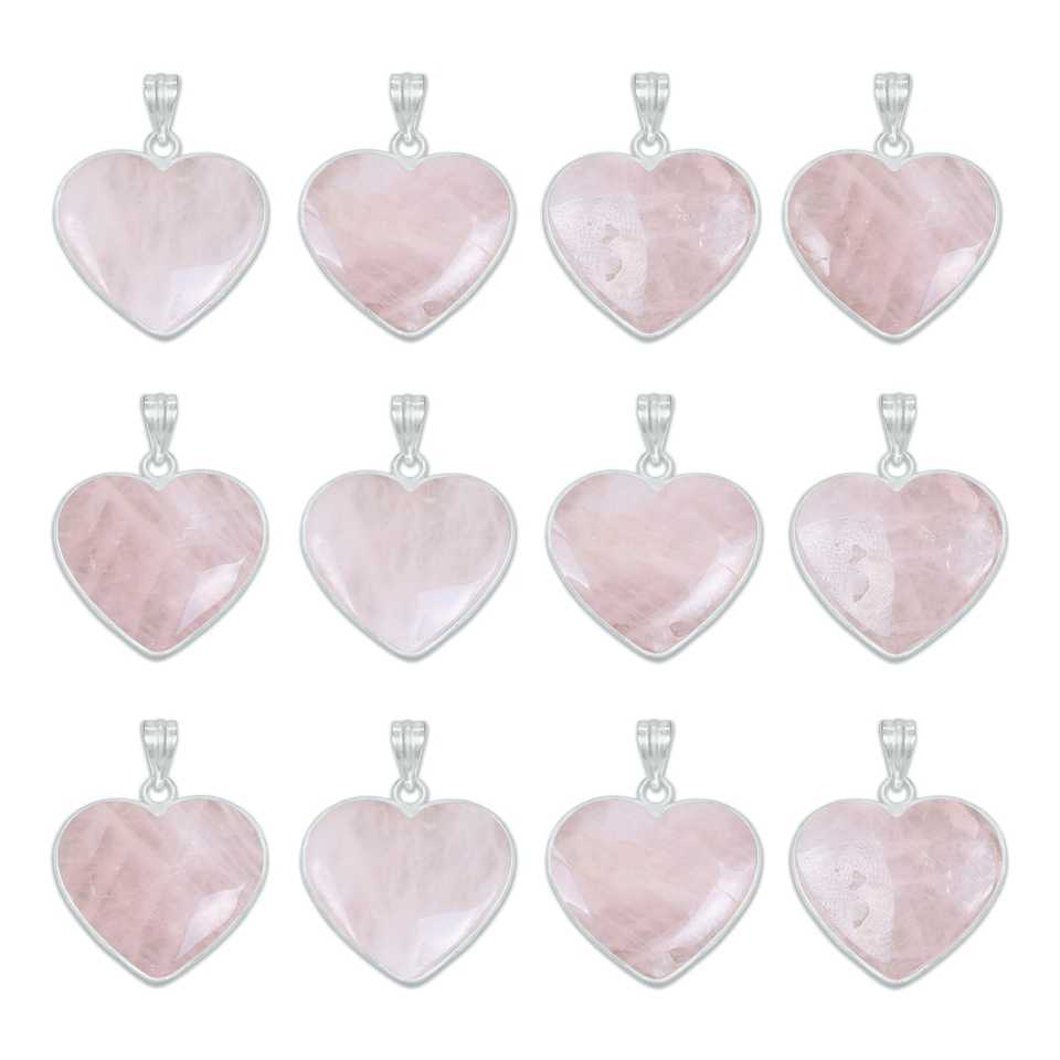 Simple Works - Colgante de Corazón de Piedra Natural Plateado en Plata para Mujer, Collar con Colgante de Cuarzo Rosa, Joyería DIY