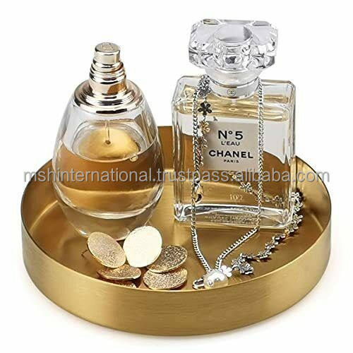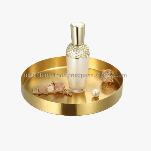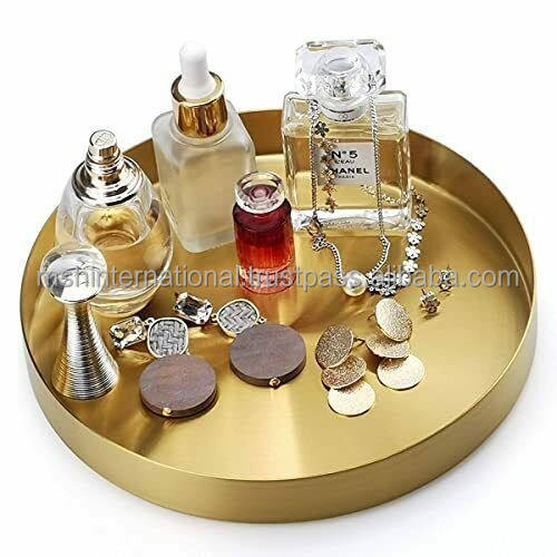 Bandeja redonda dorada multifuncional para el hogar, mango de metal Simple y moderno