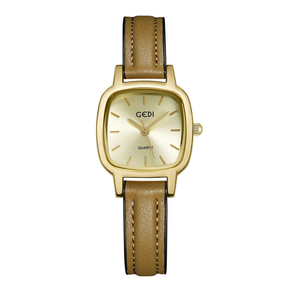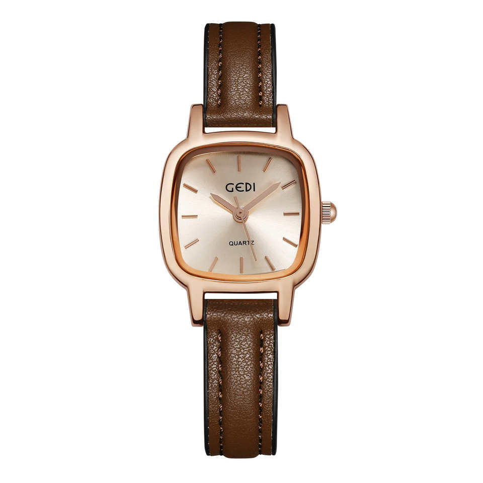 Reloj de cuarzo para mujer, sencillo y elegante, con correa de cuero marrón pequeña, resistente al agua, de alta gama.