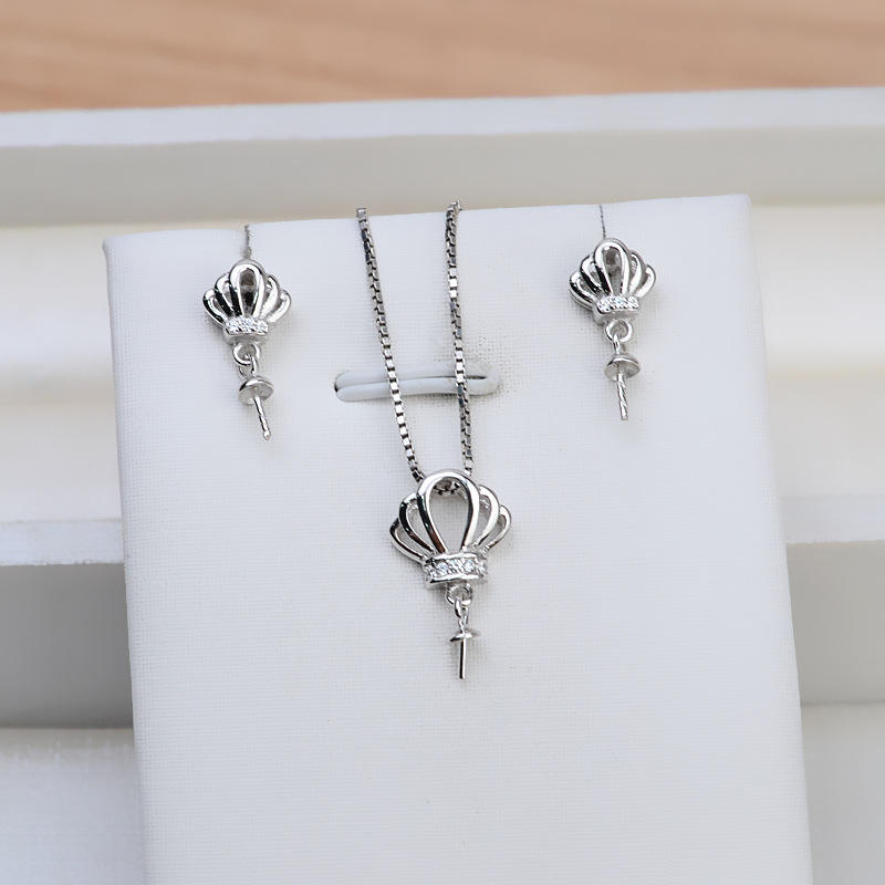 Pendientes de Plata de Ley S925 con Corona, Aretes de Perlas, Accesorios para Manualidades, Bandeja Vacía, Conjuntos de Joyería de Moda 1353