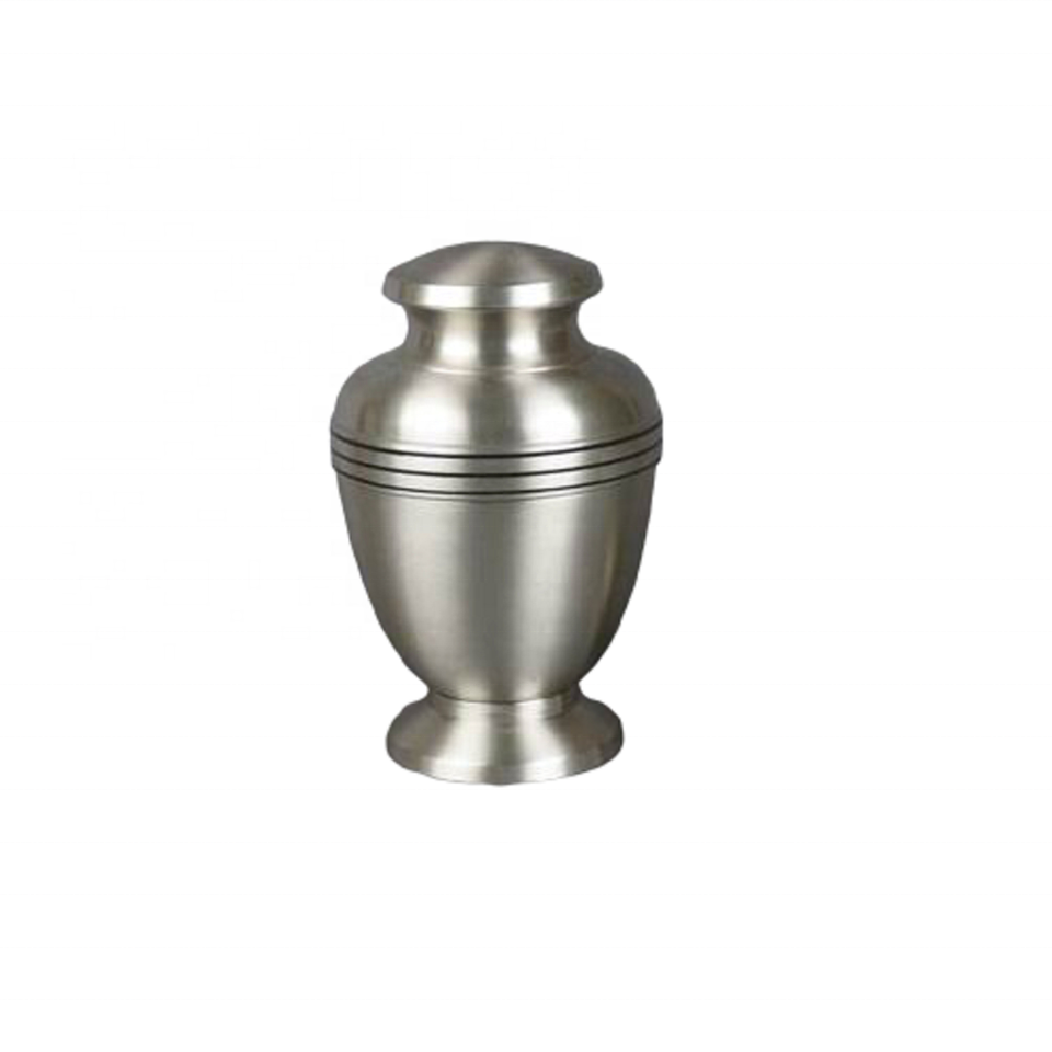 Urnas de cremación de metal de diseño simplista, urnas para cenizas conmemorativas funerarias de tres bandas estrechas a precio mayorista