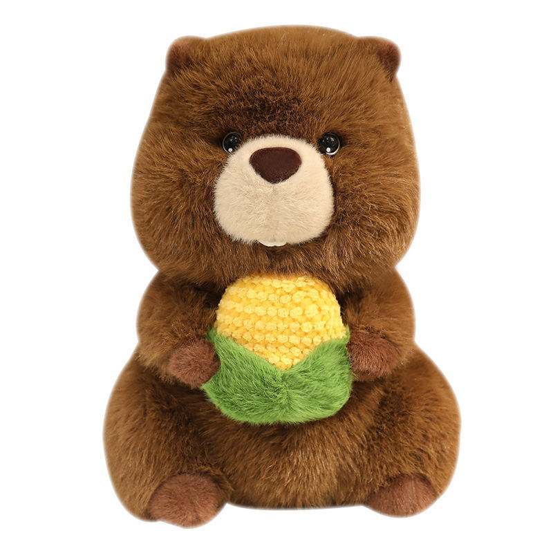 Muñeco de peluche divertido de ardilla de dibujos animados simulado con manzana de maíz, juguete de compañía encantador, regalo de fábrica, muestra rápida proporcionada