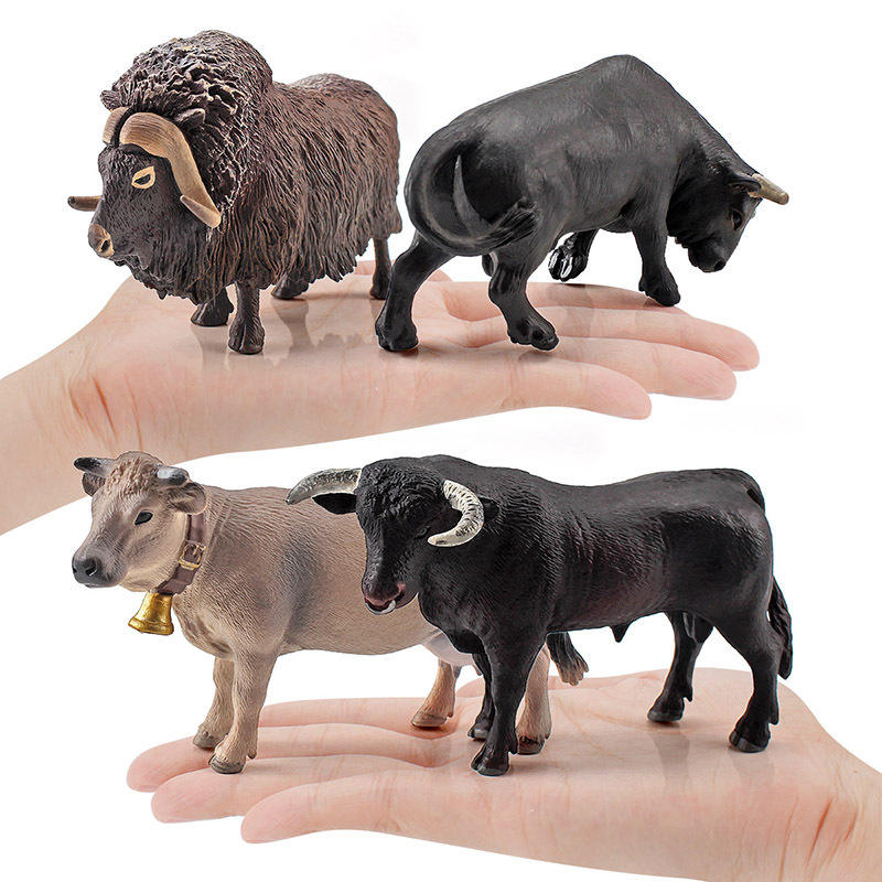 Juego de figuritas de animales de granja simulados, almizcle, buey suizo, vaca marrón, ganado del norte de África, Toro Negro, decoración de rancho en miniatura sólida