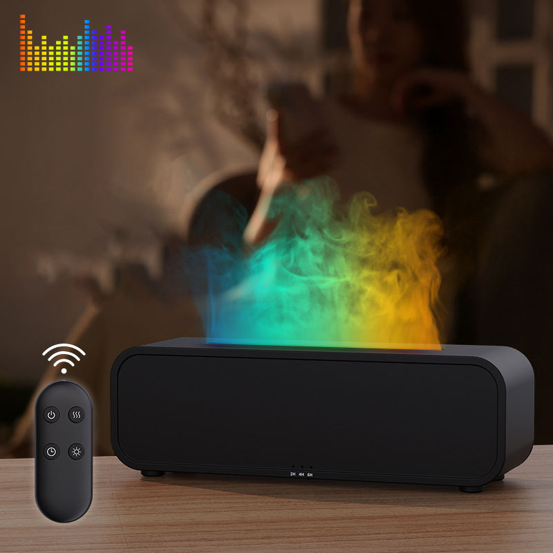 Difusor de Aromaterapia con Llama Simulada, Luz de 7 Colores, Silencioso, Protección de Apagado Automático, Humidificación Rápida, Puede Agregar Aceite Esencial