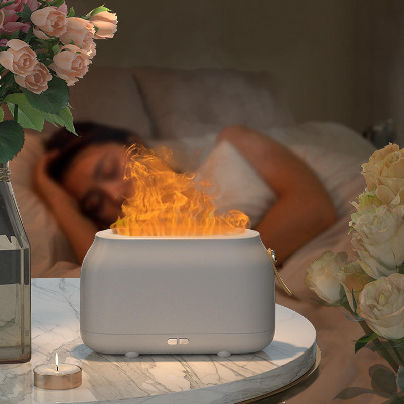 Humidificador con Llama Simulada de 0.5-1L, con Alimentación USB, Luz Nocturna Silenciosa, Difusor de Aroma para Hogar y Oficina