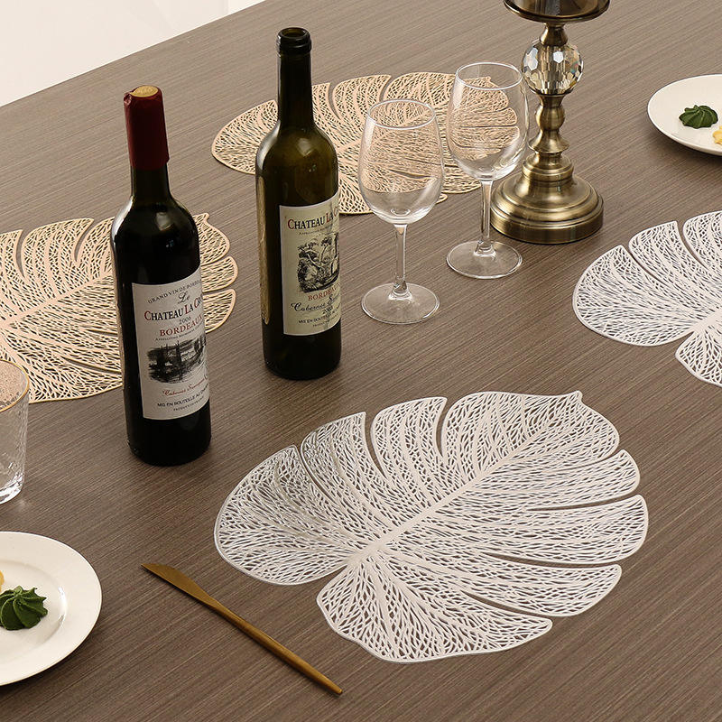 Nuevo mantel individual de PVC con diseño de hoja simulada, aislante, hueco, con forma de caparazón de tortuga, posavasos de plástico.