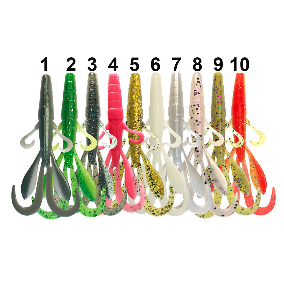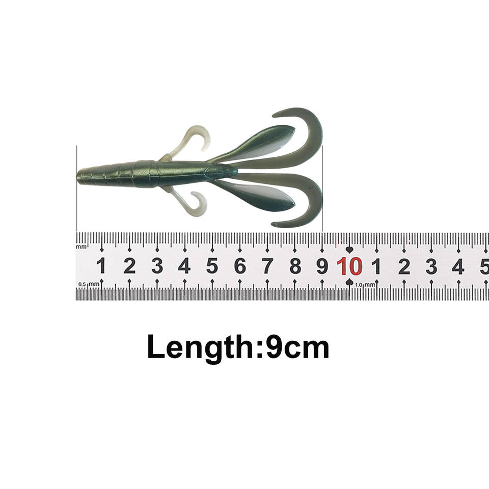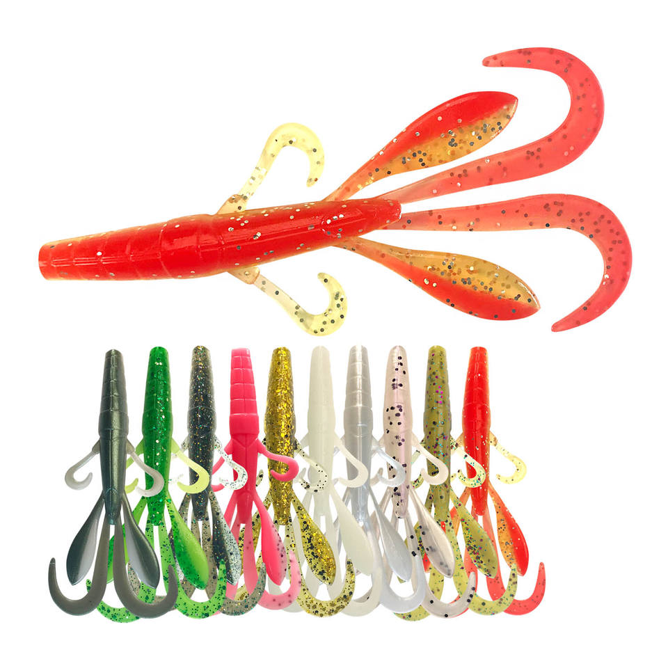 Señuelo de gambas de simulación Swimbait, 9cm, 4G, 4 Uds., Señuelos de Pesca, lubina, doble cola, señuelo suave, olor a sal, cebo Artificial, aparejos de depredador