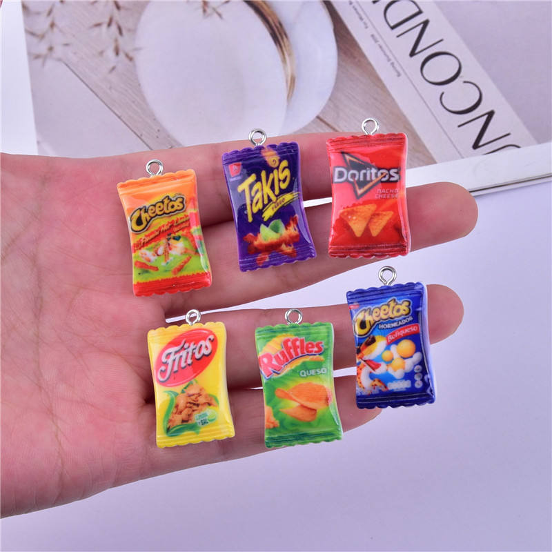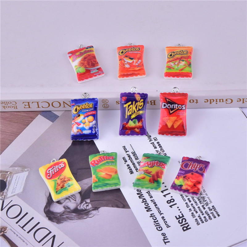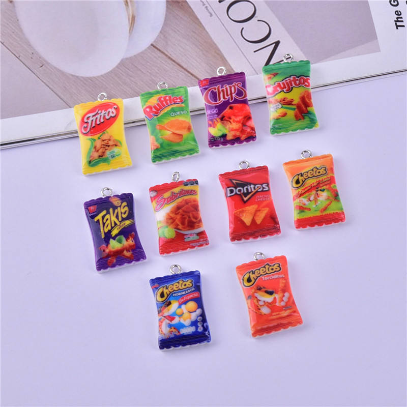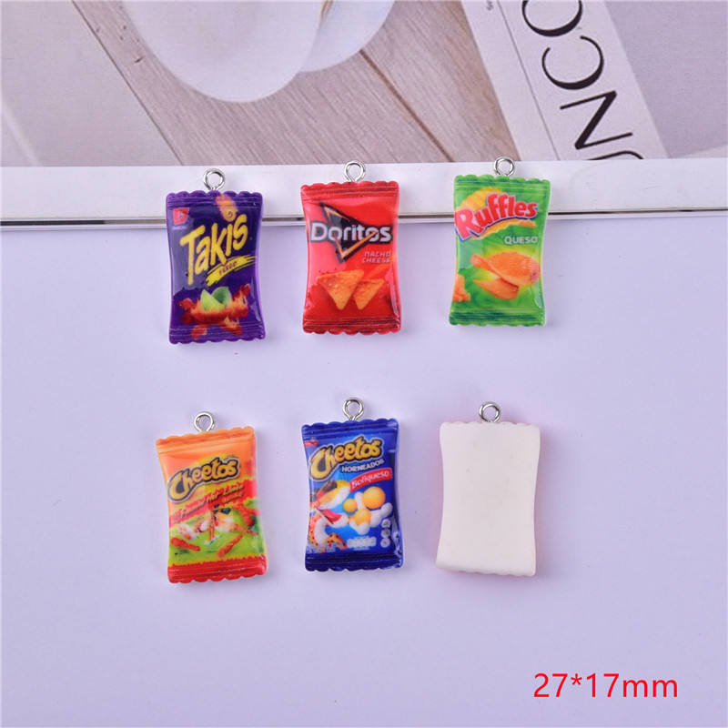 Bolsa de Aperitivos de Resina de Simulación, Resina 3D con Técnica de Goteo de Aceite, Dijes de Comida, Colgante DIY, Accesorios para Carcasas de Teléfono