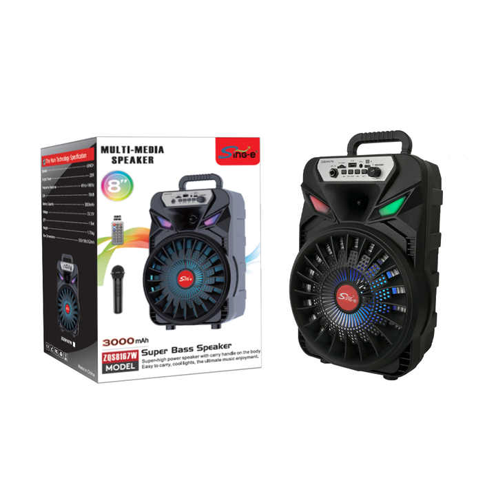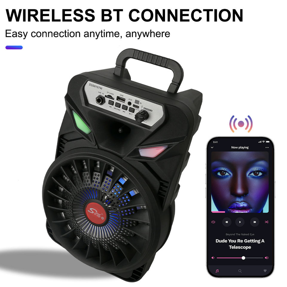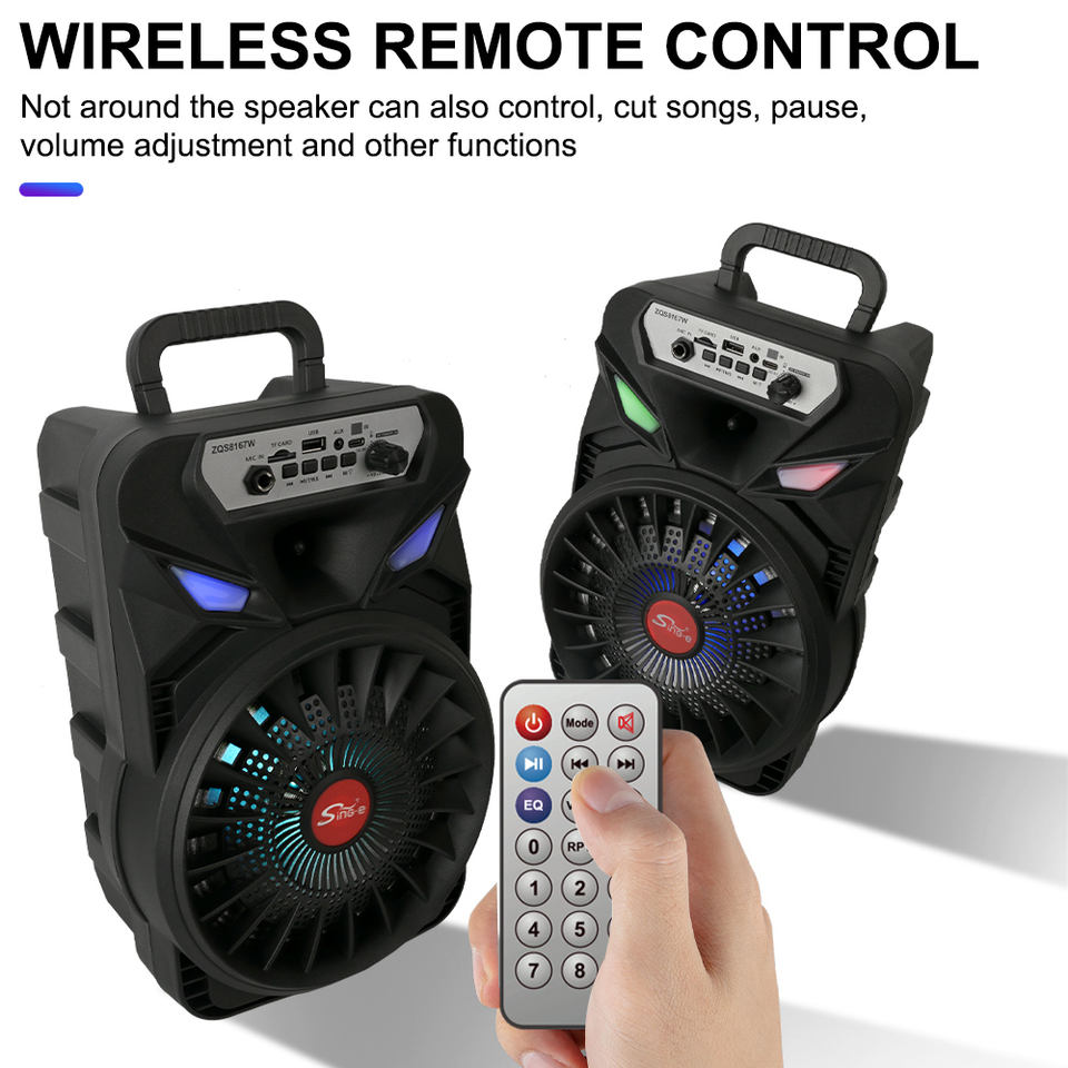 Sing-e ZQS7618WX Altavoz Portátil Inalámbrico con Bluetooth, Micrófono Inalámbrico, Alta Potencia, Altavoz de 8 Pulgadas con Alta Calidad de Sonido, Uso con Radio