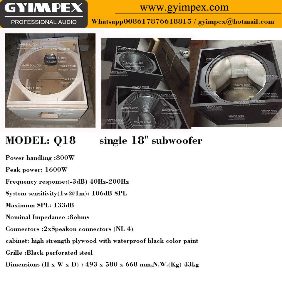 Subwoofer de ferrita de neodimio pasivo individual de 18 pulgadas Subwoofer de alta potencia para Matriz de línea dual de 10 pulgadas de la serie Q