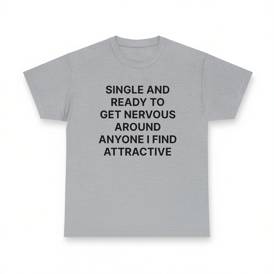Camiseta divertida con meme de meme, regalo divertido, para personas solteras y listas para sentirse nerviosas al estar con cualquiera que les atraiga.