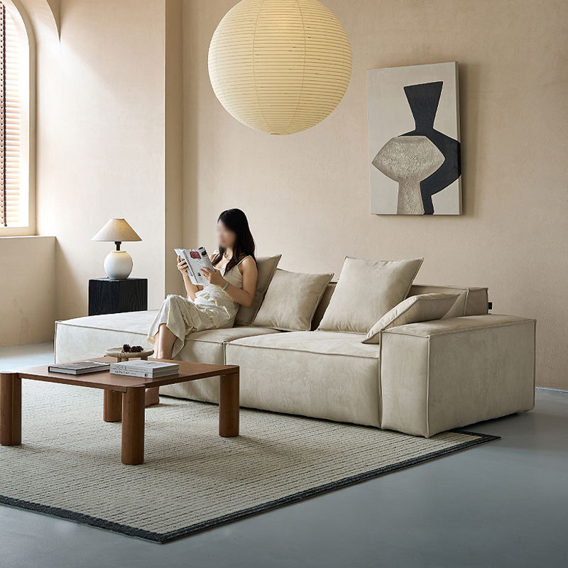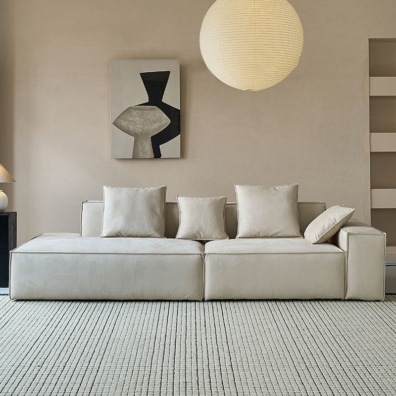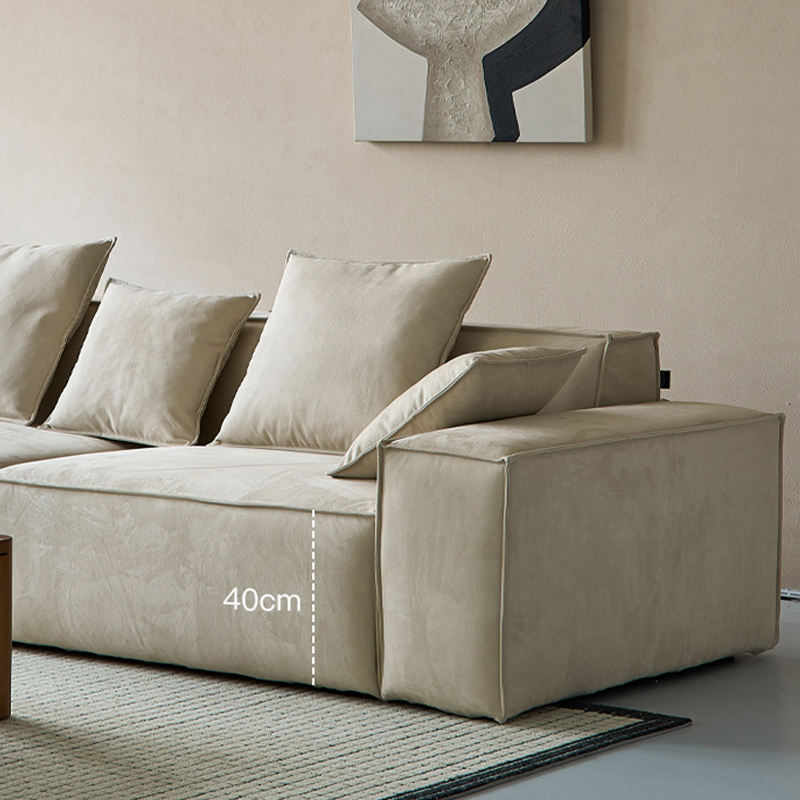 Juego de sofá modular de bloque de tofu francés con reposabrazos, Isla de tela difusa, fila recta para sala de estar, esponja