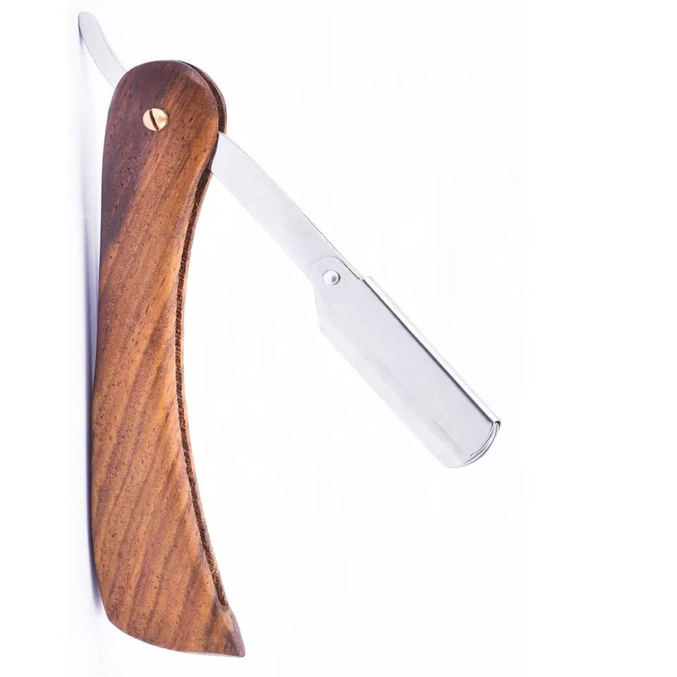 Maquinilla de afeitar recta de acero inoxidable de una hoja con mango de madera, pelo de seguridad desechable, cara, cuerpo, Bikini, Material plástico