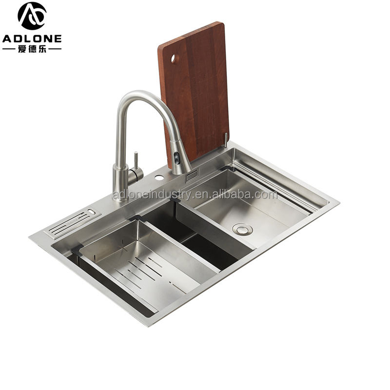 Fregadero de cocina Rectangular de acero inoxidable 304 de un solo cuenco, instalación moderna sobre encimera, sin grifo incluido