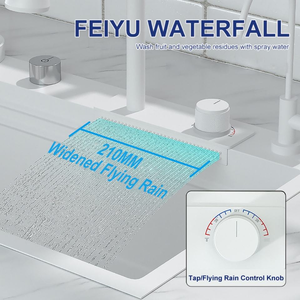 Fregadero de Cocina de una Sola Tina, Bajo Encimera, de Acero Blanco, Diseño Multifuncional con Cascada, Lavavajillas, Material de Acero Inoxidable 304 Duradero
