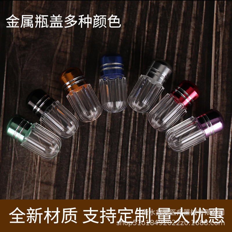 Cápsula Individual, Botella Transparente, Carcasa Acrílica, Tapa Metálica, Calibre 10 mm, Capacidad 3 ml, Envase General, Estuche para Guardar Pastillas