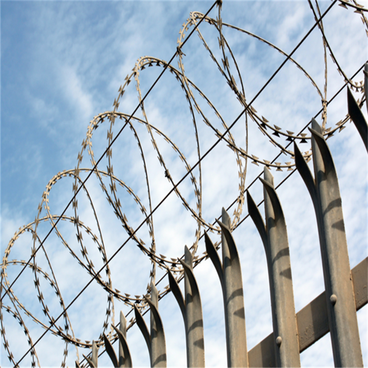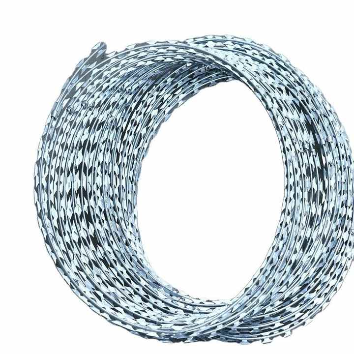 Alambre de púas de hoja de cuchilla simple en rollo para la venta, alambre de púas de doble bucle para cercas de seguridad en áreas industriales