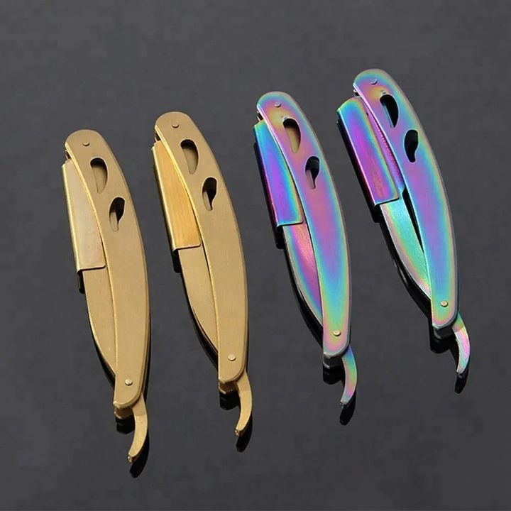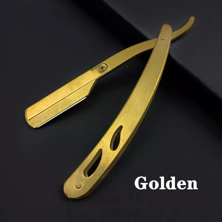 Navaja de Afeitar Plegable con Mango de Cobre, Navaja de Afeitar Dorada para Herramientas de Barbería, Instrumentos de Corte de Cabello