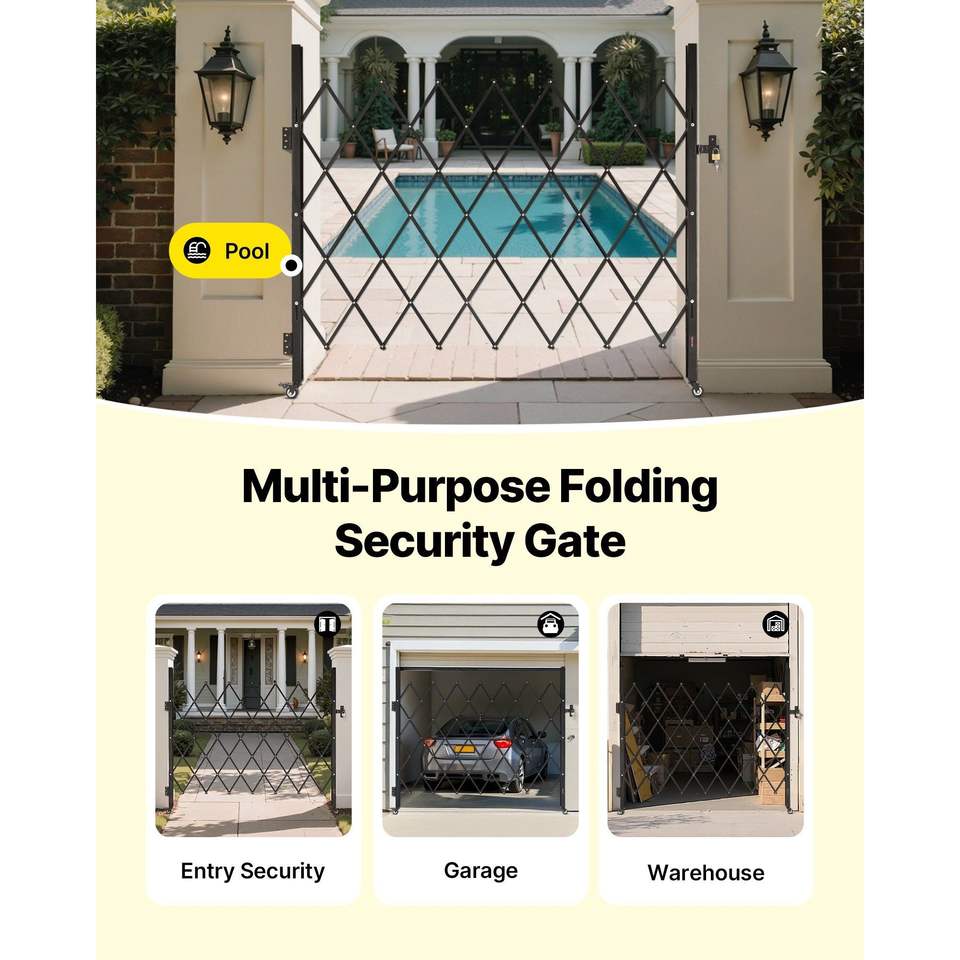 Puerta de Seguridad Plegable Individual con Diseño de Tijera Bloqueable, Ruedas Giratorias de 360 Grados, Barricada Exterior, Puertas Retráctiles de Acero