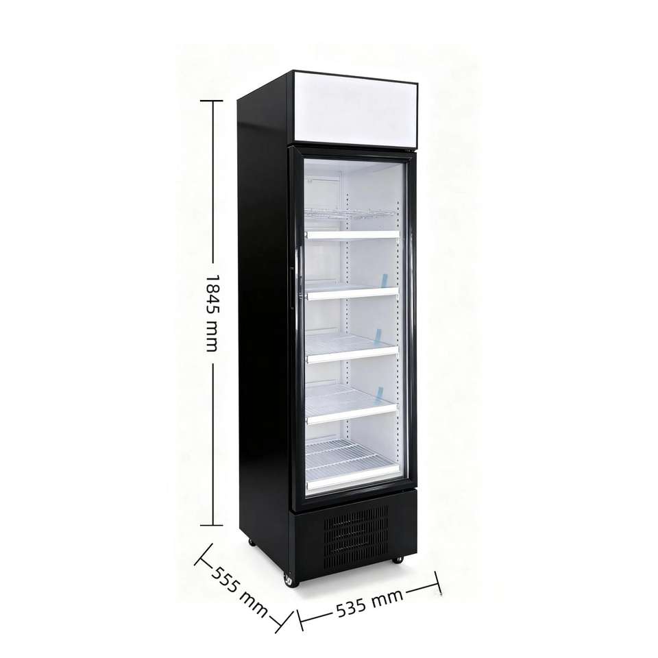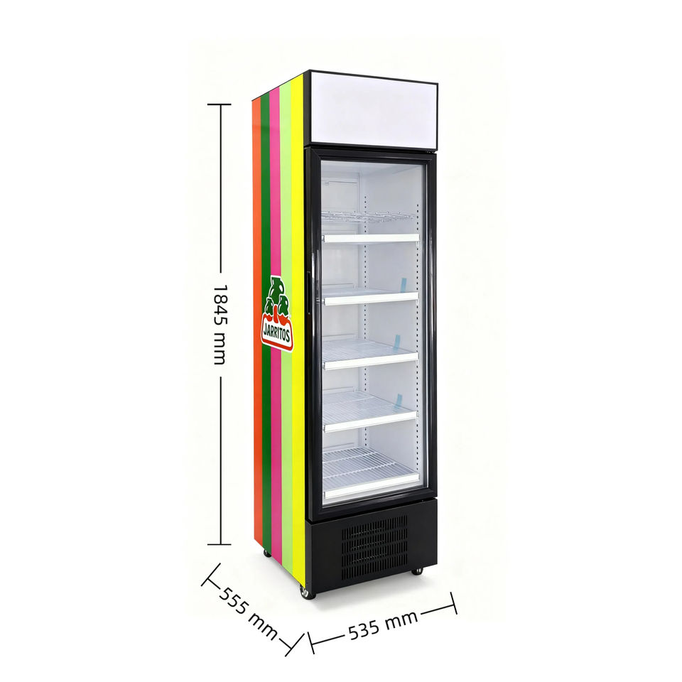 Refrigerador Comercial con Puerta de Vidrio Individual, Pantalla Digital, Ventilador, Temperatura Constante para Bebidas y Bebidas Energéticas